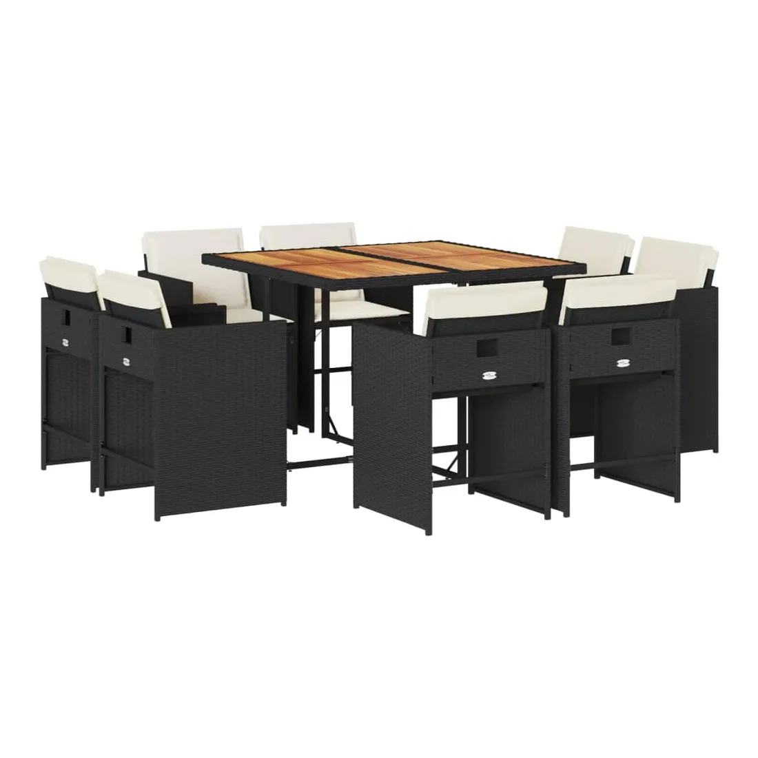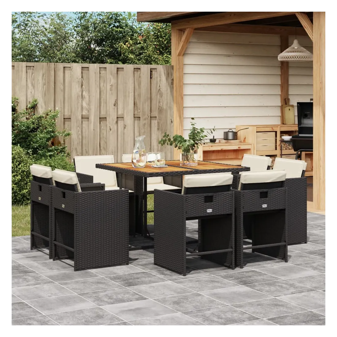 Cet ensemble de salle à manger de jardin est un excellent choix pour les repas en plein air ou pour vous détendre dans le jardin, dans l'arrière-cour ou sur la terrasse. Matériau durable : la résine tressée, également connue sous le nom de poly rotin, est un matériau synthétique solide et nécessitant peu d'entretien qui ressemble au rotin naturel. Il est léger, facile à nettoyer et couramment utilisé pour les meubles d'extérieur en raison de sa durabilité et de ses propriétés de résistance aux intempéries.Rangement compact : ces chaises sont dotées d'un dossier rabattable, ce qui permet de les ranger facilement sous la table. Une fois pliées, elles se rangent parfaitement sous la table, formant un cube peu encombrant.Expérience d'assise confortable : ce mobilier d'extérieur, doté de coussins épais, offre une expérience d'assise confortable.Housse amovible et lavable : ces coussins de siège sont dotés de housses amovibles pour un lavage et un entretien faciles. Les housses de coussin de chaise ont un rabat à l'arrière pour une fixation facile aux chaises.Dessus stable et facile à nettoyer : cette table de jardin a un dessus en bois d'acacia robuste, durable et facile à nettoyer avec un chiffon humide. Bon à savoir : Pour que vos meubles d'extérieur restent beaux, nous vous recommandons de les protéger avec une housse imperméable.