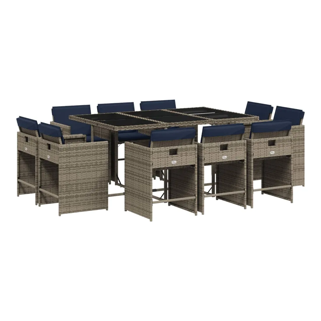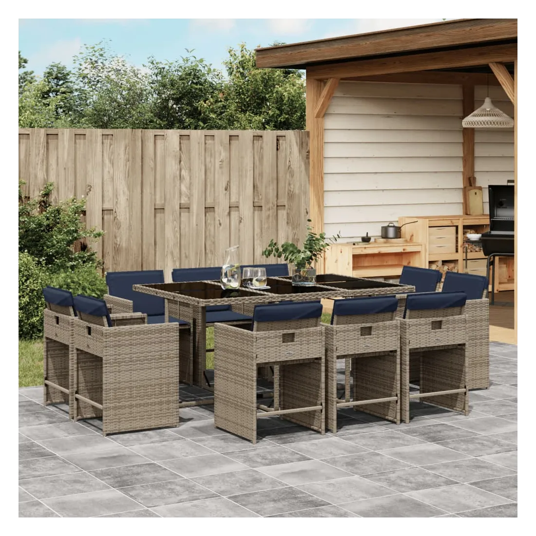 Ensemble à manger de jardin 11 pcs coussins gris résine tressée