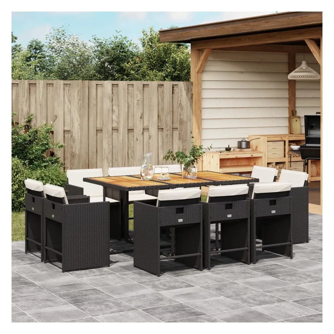 Cet ensemble de salle à manger de jardin est un excellent choix pour les repas en plein air ou pour vous détendre dans le jardin, dans l'arrière-cour ou sur la terrasse. Matériau durable : la résine tressée, également connue sous le nom de poly rotin, est un matériau synthétique solide et nécessitant peu d'entretien qui ressemble au rotin naturel. Il est léger, facile à nettoyer et couramment utilisé pour les meubles d'extérieur en raison de sa durabilité et de ses propriétés de résistance aux intempéries.Rangement compact : ces chaises sont dotées d'un dossier rabattable, ce qui permet de les ranger facilement sous la table. Une fois pliées, elles se rangent parfaitement sous la table, formant un cube peu encombrant.Expérience d'assise confortable : ce mobilier d'extérieur, doté de coussins épais, offre une expérience d'assise confortable.Housse amovible et lavable : ces coussins de siège sont dotés de housses amovibles pour un lavage et un entretien faciles. Les housses de coussin de chaise ont un rabat à l'arrière pour une fixation facile aux chaises.Dessus stable et facile à nettoyer : cette table de jardin a un dessus en bois d'acacia robuste, durable et facile à nettoyer avec un chiffon humide. Bon à savoir : Pour que vos meubles d'extérieur restent beaux, nous vous recommandons de les protéger avec une housse imperméable.