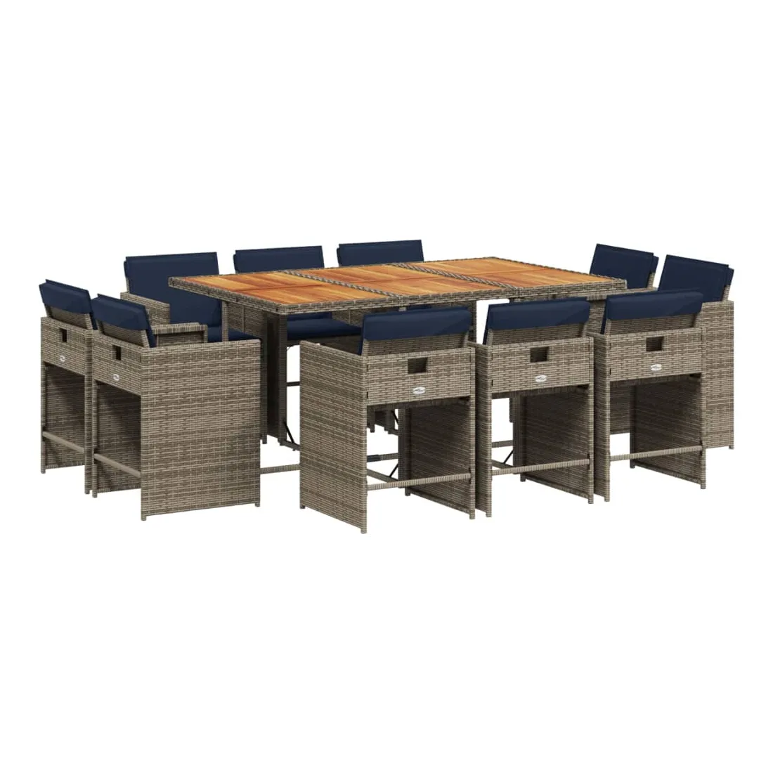 Ensemble à manger de jardin 11 pcs coussins gris résine tressée