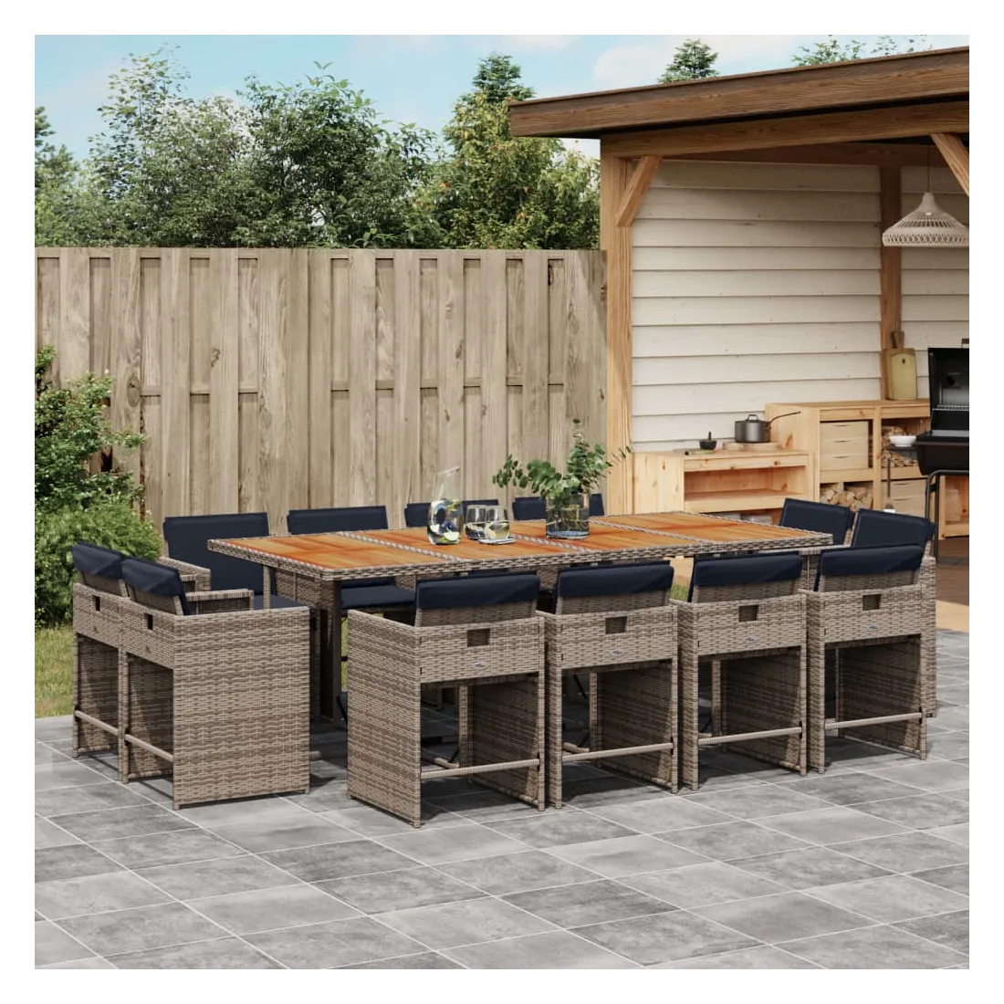 Ensemble à manger de jardin avec coussins 13 pcs résine tressée