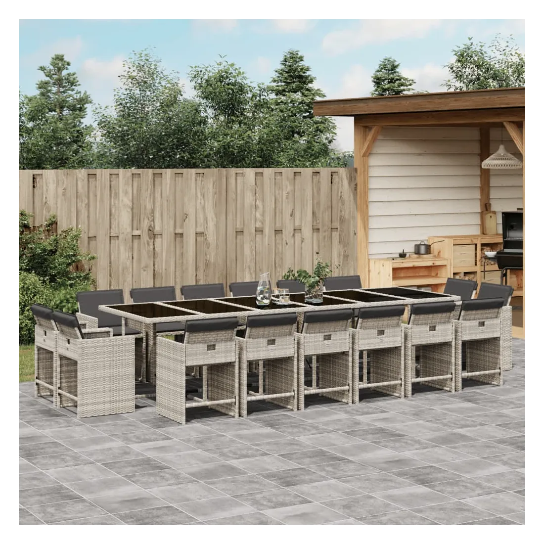 Cet ensemble de salle à manger de jardin est un excellent choix pour les repas en plein air ou pour vous détendre dans le jardin, dans l'arrière-cour ou sur la terrasse. Matériau durable : la résine tressée, également connue sous le nom de poly rotin, est un matériau synthétique solide et nécessitant peu d'entretien qui ressemble au rotin naturel. Il est léger, facile à nettoyer et couramment utilisé pour les meubles d'extérieur en raison de sa durabilité et de ses propriétés de résistance aux intempéries.Rangement compact : ces chaises sont dotées d'un dossier rabattable, ce qui permet de les ranger facilement sous la table. Une fois pliées, elles se rangent parfaitement sous la table, formant un cube peu encombrant.Expérience d'assise confortable : ce mobilier d'extérieur, doté de coussins épais, offre une expérience d'assise confortable.Housse amovible et lavable : ces coussins de siège sont dotés de housses amovibles pour un lavage et un entretien faciles. Les housses de coussin de chaise ont un rabat à l'arrière pour une fixation facile aux chaises.Dessus stable et facile à nettoyer : cette table de jardin est dotée d'un dessus en verre trempé robuste, durable et facile à nettoyer à l'aide d'un chiffon humide. Bon à savoir : Pour que vos meubles d'extérieur restent beaux, nous vous recommandons de les protéger avec une housse imperméable.