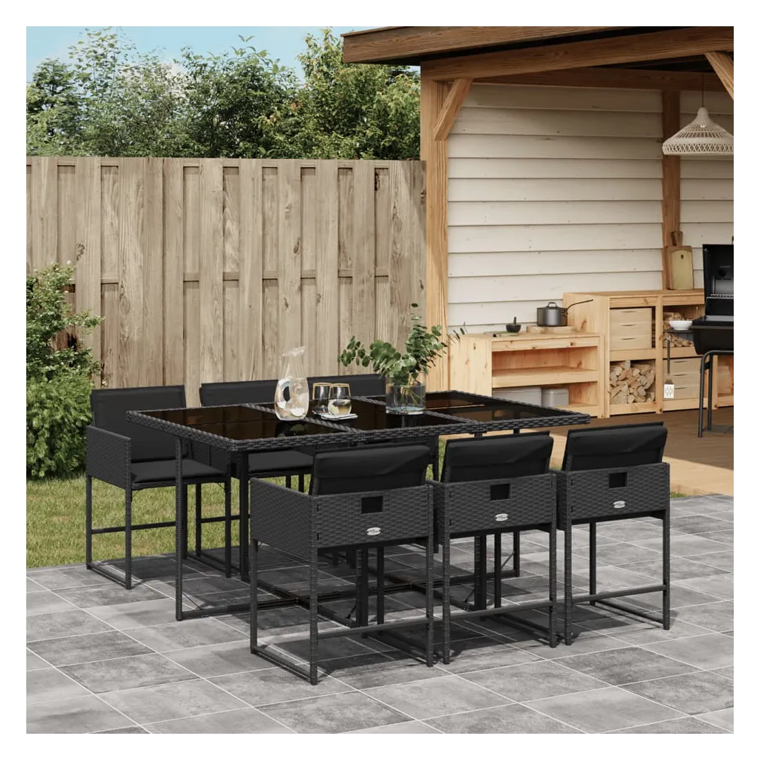 Cet ensemble de salle à manger de jardin est un excellent choix pour les repas en plein air ou pour vous détendre dans le jardin, dans l'arrière-cour ou sur la terrasse. Matériau durable : la résine tressée, également connue sous le nom de poly rotin, est un matériau synthétique solide et nécessitant peu d'entretien qui ressemble au rotin naturel. Il est léger, facile à nettoyer et couramment utilisé pour les meubles d'extérieur en raison de sa durabilité et de ses propriétés de résistance aux intempéries.Rangement compact : ces chaises sont dotées d'un dossier rabattable, ce qui permet de les ranger facilement sous la table. Une fois pliées, elles se rangent parfaitement sous la table, formant un cube peu encombrant.Expérience d'assise confortable : ce mobilier d'extérieur, doté de coussins épais, offre une expérience d'assise confortable.Housse amovible et lavable : ces coussins de siège sont dotés de housses amovibles pour un lavage et un entretien faciles. Les housses de coussin ont un rabat à l'arrière pour une fixation facile aux dossiers.Dessus en verre : le dessus de la table d'extérieur est fabriqué en verre trempé solide et durable, ce qui le rend facile à nettoyer avec un chiffon humide et ajoute une touche d'élégance à votre espace extérieur. Bon à savoir :Pour que vos meubles d'extérieur restent beaux, nous vous recommandons de les protéger avec une housse imperméable.
