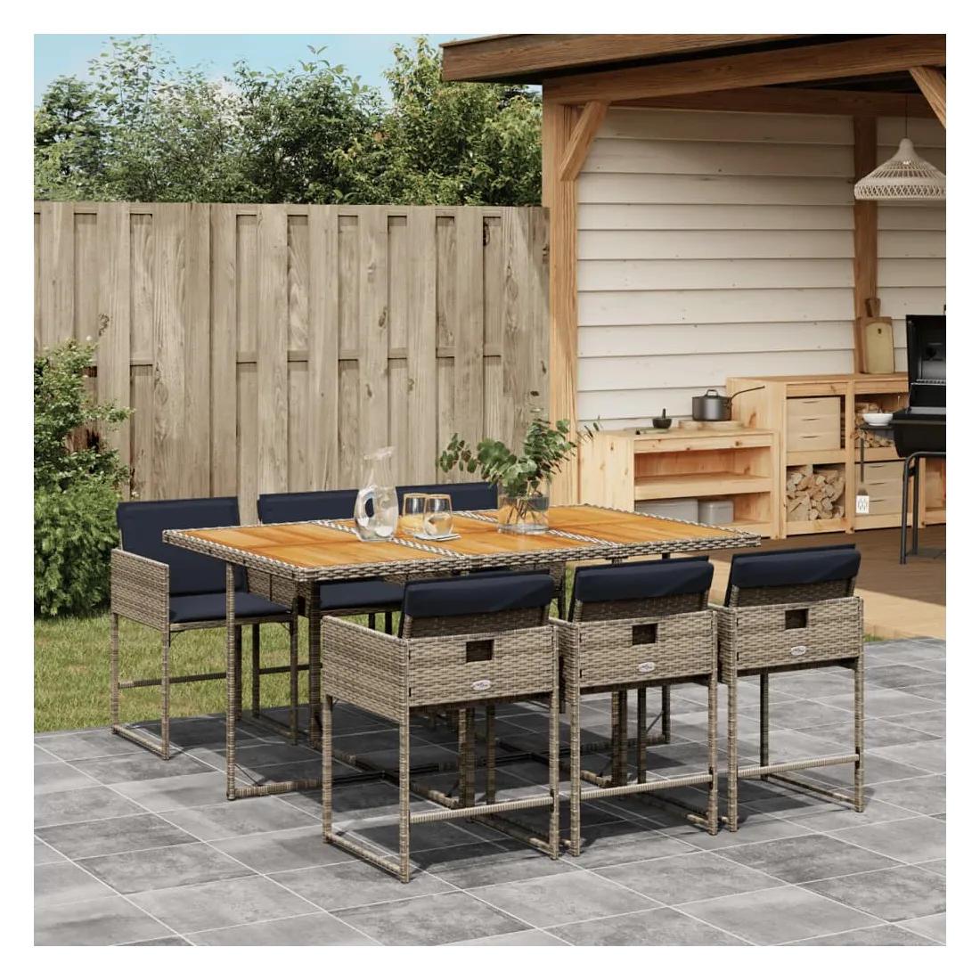 vidaXLCet ensemble de salle à manger de jardin est un excellent choix pour les repas en plein air ou pour vous détendre dans le jardin, dans l'arrière-cour ou sur la terrasse. Matériau durable : la résine tressée, également connue sous le nom de poly rotin, est un matériau synthétique solide et nécessitant peu d'entretien qui ressemble au rotin naturel. Il est léger, facile à nettoyer et couramment utilisé pour les meubles d'extérieur en raison de sa durabilité et de ses propriétés de résistance aux intempéries.Rangement compact : ces chaises sont dotées d'un dossier rabattable, ce qui permet de les ranger facilement sous la table. Une fois pliées, elles se rangent parfaitement sous la table, formant un cube peu encombrant.Expérience d'assise confortable : ce mobilier d'extérieur, doté de coussins épais, offre une expérience d'assise confortable.Housse amovible et lavable : ces coussins de siège sont dotés de housses amovibles pour un lavage et un entretien faciles. Les housses de coussin ont un rabat à l'arrière pour une fixation facile aux dossiers.Dessus stable et facile à nettoyer : cette table de jardin a un dessus en bois d'acacia robuste, durable et facile à nettoyer avec un chiffon humide. Bon à savoir :Pour que vos meubles d'extérieur restent beaux, nous vous recommandons de les protéger avec une housse imperméable.