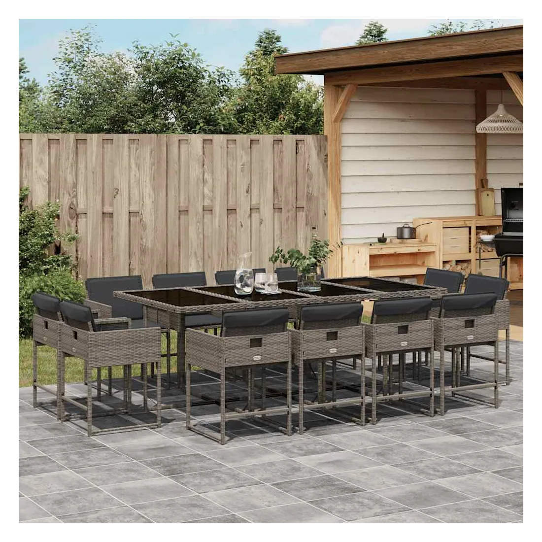 Cet ensemble de salle à manger de jardin est un excellent choix pour les repas en plein air ou pour vous détendre dans le jardin, l'arrière-cour ou le patio. Matériau durable : la résine tressée, également connue sous le nom de poly rotin, est un matériau synthétique solide et nécessitant peu d'entretien qui ressemble au rotin naturel. Il est léger, facile à nettoyer et couramment utilisé pour les meubles d'extérieur en raison de sa durabilité et de ses propriétés de résistance aux intempéries.Rangement compact : ces chaises sont dotées d'un dossier rabattable, ce qui permet de les ranger facilement sous la table. Une fois pliées, elles se rangent parfaitement sous la table, formant un cube peu encombrant.Expérience d'assise confortable : ce mobilier d'extérieur, doté de coussins épais, offre une expérience d'assise confortable.Housse amovible et lavable : ces coussins de siège sont dotés de housses amovibles pour un lavage et un entretien faciles. Les housses de coussin de chaise ont un rabat à l'arrière pour une fixation facile aux chaises.Dessus en verre : le dessus de la table de jardin est fabriqué en verre trempé solide et durable, ce qui le rend facile à nettoyer avec un chiffon humide et ajoute une touche d'élégance à votre espace extérieur. Bon à savoir :Pour que vos meubles d'extérieur restent beaux, nous vous recommandons de les protéger avec une housse imperméable.