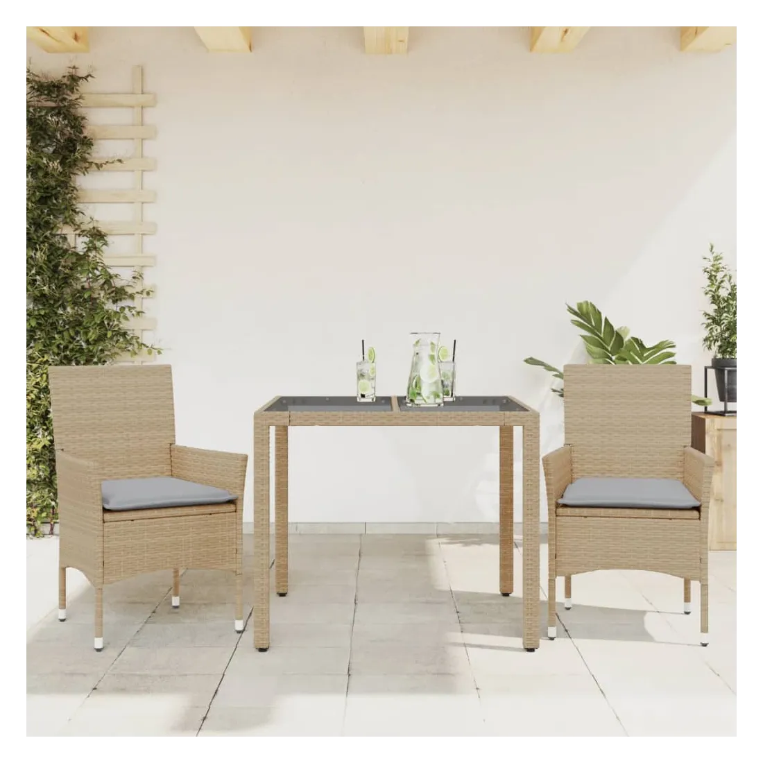 Cet ensemble de salle à manger de jardin est un excellent choix pour les repas en plein air ou pour vous détendre dans le jardin, dans l'arrière-cour ou sur la terrasse. Matériau durable : la résine tressée, également connue sous le nom de poly rotin, est un matériau synthétique solide et nécessitant peu d'entretien qui ressemble au rotin naturel. Il est léger, facile à nettoyer et couramment utilisé pour les meubles d'extérieur en raison de sa durabilité et de ses propriétés de résistance aux intempéries.Expérience d'assise confortable : cet ensemble de meubles d'extérieur, doté de coussins épais, offre une expérience d'assise confortable.Housse amovible et lavable : ces coussins de siège sont dotés de housses amovibles pour un lavage et un entretien faciles.Dessus en verre : le dessus de la table d'extérieur est fabriqué en verre trempé solide et durable, ce qui le rend facile à nettoyer avec un chiffon humide et ajoute une touche d'élégance à votre espace extérieur. Bon à savoir :Pour que vos meubles d'extérieur restent beaux, nous vous recommandons de les protéger avec une housse imperméable.