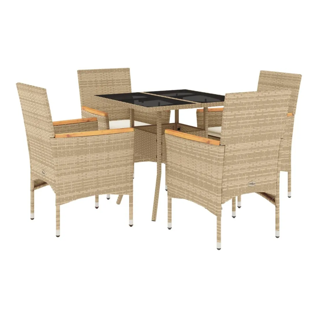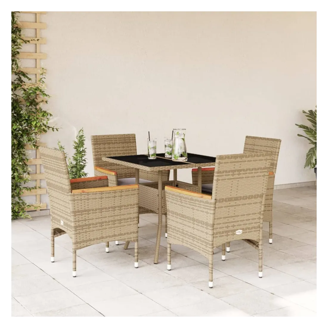 Cet ensemble de salle à manger de jardin est un excellent choix pour les repas en plein air ou pour vous détendre dans le jardin, dans l'arrière-cour ou sur la terrasse. Matériau durable : la résine tressée, également connue sous le nom de poly rotin, est un matériau synthétique solide et nécessitant peu d'entretien qui ressemble au rotin naturel. Il est léger, facile à nettoyer et couramment utilisé pour les meubles d'extérieur en raison de sa durabilité et de ses propriétés de résistance aux intempéries.Expérience d'assise confortable : cet ensemble de meubles d'extérieur, doté de coussins épais, offre une expérience d'assise confortable.Housse amovible et lavable : ces coussins de siège sont dotés de housses amovibles pour un lavage et un entretien faciles.Dessus en verre : le dessus de la table d'extérieur est fabriqué en verre trempé solide et durable, ce qui le rend facile à nettoyer avec un chiffon humide et ajoute une touche d'élégance à votre espace extérieur. Bon à savoir :Pour que vos meubles d'extérieur restent beaux, nous vous recommandons de les protéger avec une housse imperméable.