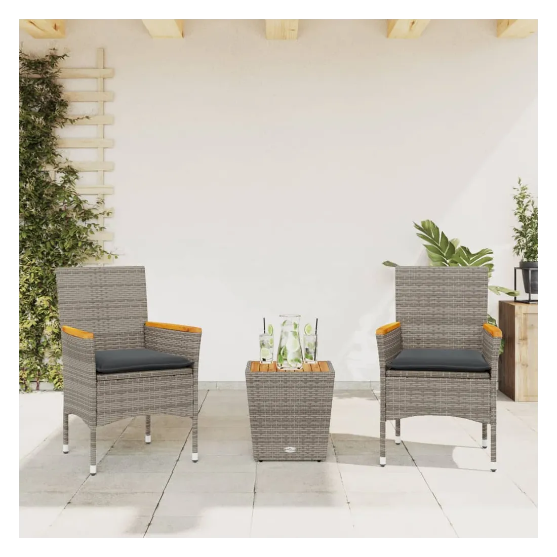 Savourez une tasse de café ou discutez avec votre famille et vos amis dans le jardin, l'arrière-cour ou sur le balcon avec cet ensemble de bistro confortable ! Matériau durable : la résine tressée, également connue sous le nom de poly rotin, est un matériau synthétique solide et nécessitant peu d'entretien qui ressemble au rotin naturel. Il est léger, facile à nettoyer et couramment utilisé pour les meubles d'extérieur en raison de sa durabilité et de ses propriétés de résistance aux intempéries.Expérience d'assise confortable : cet ensemble de meubles d'extérieur, doté de coussins épais, offre une expérience d'assise confortable.Housse amovible et lavable : ces coussins de siège sont dotés de housses amovibles pour un lavage et un entretien faciles.Dessus en verre : le dessus de la table d'extérieur est fabriqué en verre trempé solide et durable, ce qui le rend facile à nettoyer avec un chiffon humide et ajoute une touche d'élégance à votre espace extérieur. Bon à savoir :Pour que vos meubles d'extérieur restent beaux, nous vous recommandons de les protéger avec une housse imperméable.