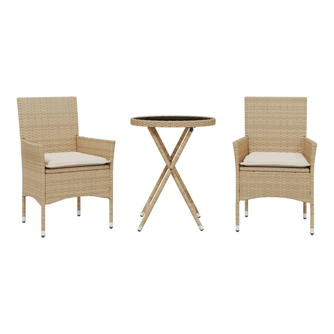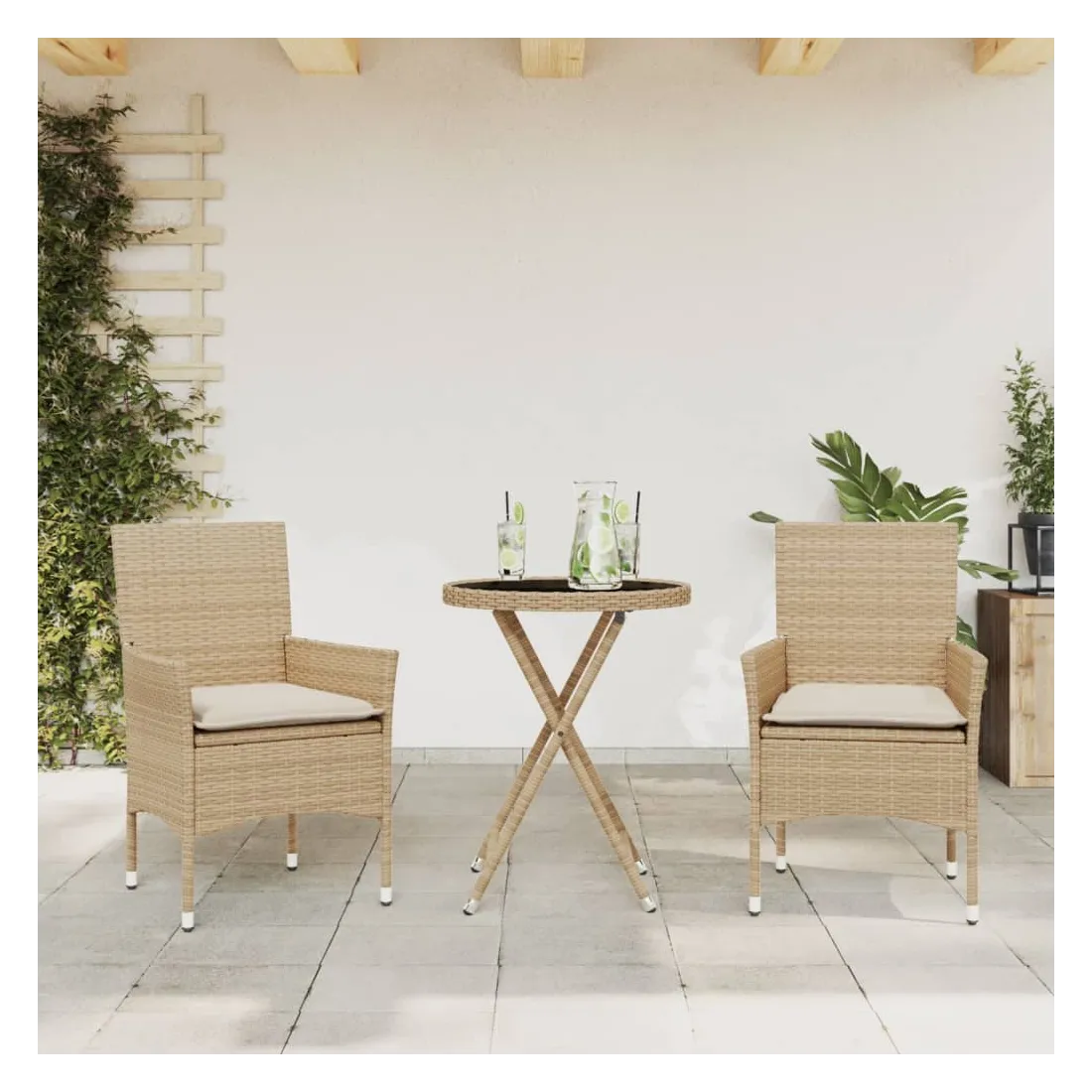 Savourez une tasse de café ou discutez avec votre famille et vos amis dans le jardin, l'arrière-cour ou sur le balcon avec cet ensemble de bistro confortable ! Matériau durable : la résine tressée, également connue sous le nom de poly rotin, est un matériau synthétique solide et nécessitant peu d'entretien qui ressemble au rotin naturel. Il est léger, facile à nettoyer et couramment utilisé pour les meubles d'extérieur en raison de sa durabilité et de ses propriétés de résistance aux intempéries.Expérience d'assise confortable : cet ensemble de meubles d'extérieur, doté de coussins épais, offre une expérience d'assise confortable.Housse amovible et lavable : ces coussins de siège sont dotés de housses amovibles pour un lavage et un entretien faciles.Dessus en verre : le dessus de la table d'extérieur est fabriqué en verre trempé solide et durable, ce qui le rend facile à nettoyer avec un chiffon humide et ajoute une touche d'élégance à votre espace extérieur. Bon à savoir :Pour que vos meubles d'extérieur restent beaux, nous vous recommandons de les protéger avec une housse imperméable.