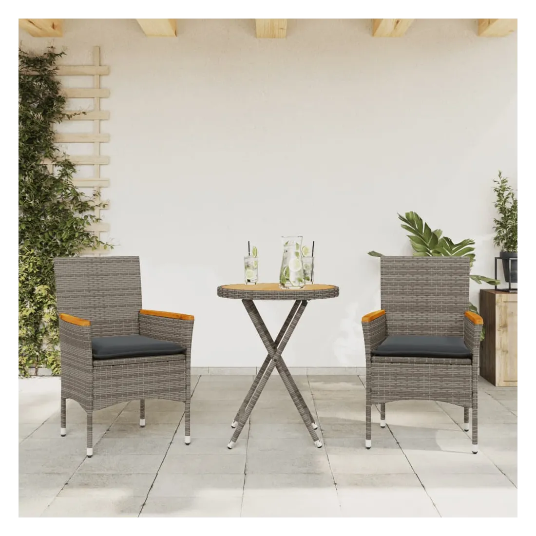 Savourez une tasse de café ou discutez avec votre famille et vos amis dans le jardin, l'arrière-cour ou sur le balcon avec cet ensemble de bistro confortable ! Matériau durable : la résine tressée, également connue sous le nom de poly rotin, est un matériau synthétique solide et nécessitant peu d'entretien qui ressemble au rotin naturel. Il est léger, facile à nettoyer et couramment utilisé pour les meubles d'extérieur en raison de sa durabilité et de ses propriétés de résistance aux intempéries.Expérience d'assise confortable : cet ensemble de meubles d'extérieur, doté de coussins épais, offre une expérience d'assise confortable.Housse amovible et lavable : ces coussins de siège sont dotés de housses amovibles pour un lavage et un entretien faciles.Dessus stable et facile à nettoyer : cette table de jardin a un dessus en bois d'acacia robuste, durable et facile à nettoyer avec un chiffon humide. Bon à savoir :Pour que vos meubles d'extérieur restent beaux, nous vous recommandons de les protéger avec une housse imperméable.