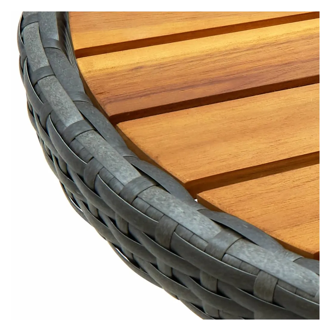- Matériau : résine tressée, acier enduit de poudre, bois d'acacia massif avec finition à l'huile