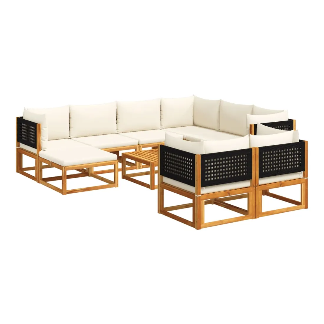 Ensemble de canapés de jardin 10 pièces avec coussins en bois d'acacia et rotin