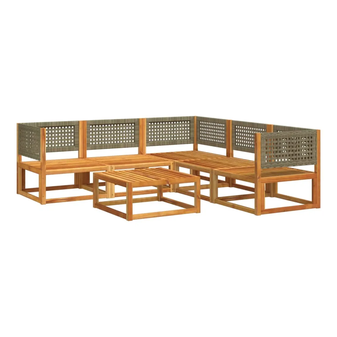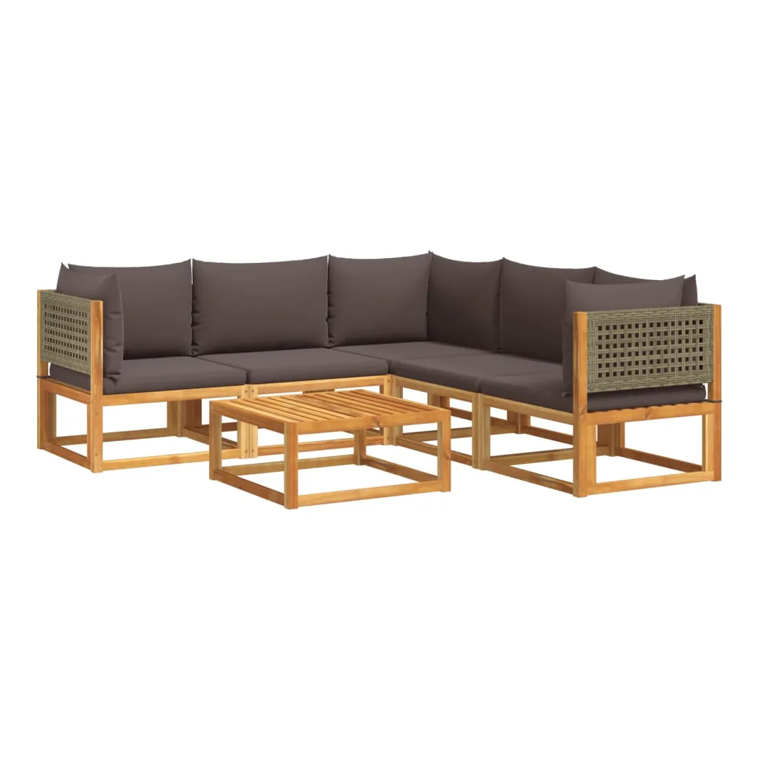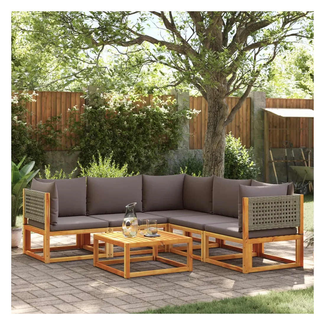 Ensemble de canapés de jardin 6 pièces avec coussins en bois d'acacia et rotin