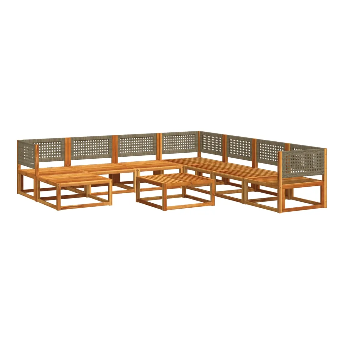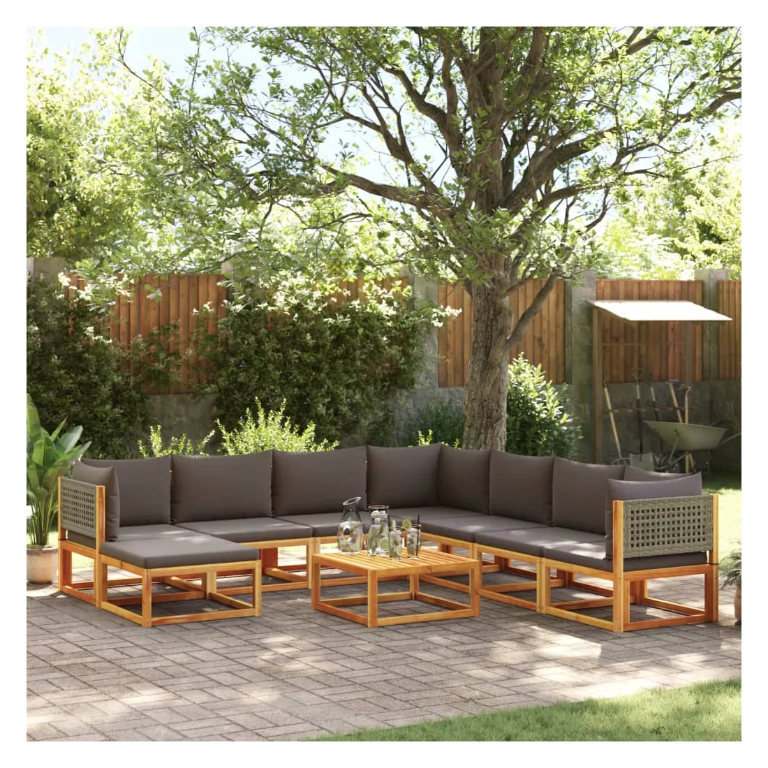 Ensemble de canapés de jardin 9 pièces avec coussins en bois d'acacia et rotin