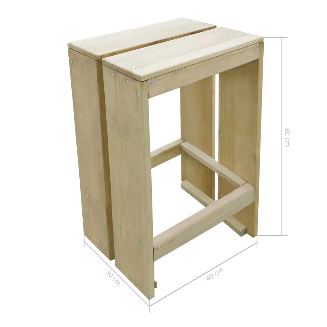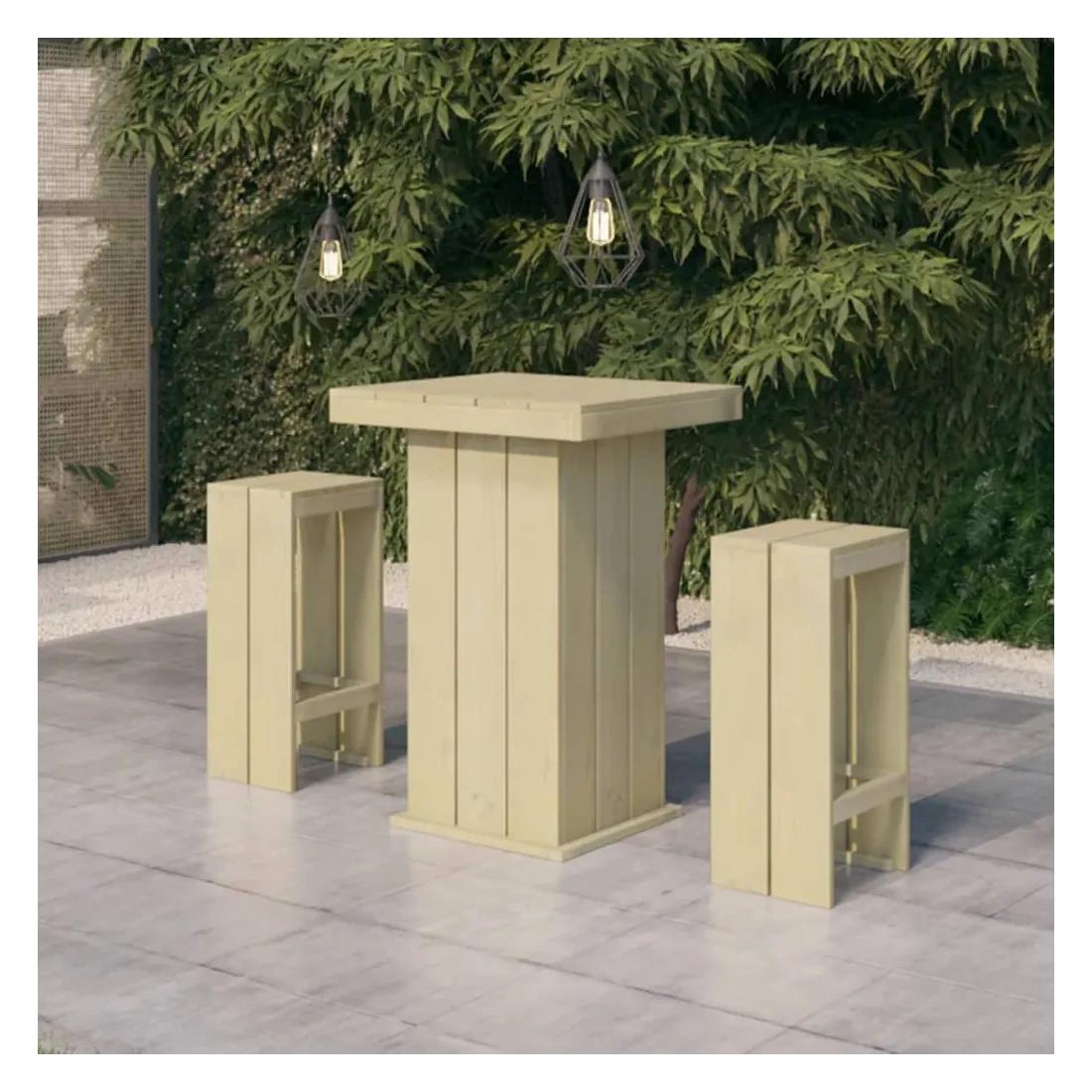 Avec un design élégant mais pratique, cet ensemble de bar de jardin sublime votre espace de vie extérieur ! Fabriqué en bois de pin imprégné de vert, cet ensemble de bar d'extérieur en bois est très solide, durable et résistant à la corrosion. Cet ensemble de meubles est un choix idéal pour les moments de détente dans un jardin de maison de campagne romantique ou près d'un étang de jardin idyllique pour dîner en famille et entre amis. Veuillez noter que le bois est un produit naturel et peut présenter des imperfections. Remarque : afin de prolonger la durée de vie des meubles d'extérieur, nous vous recommandons de les protéger avec une housse imperméable.