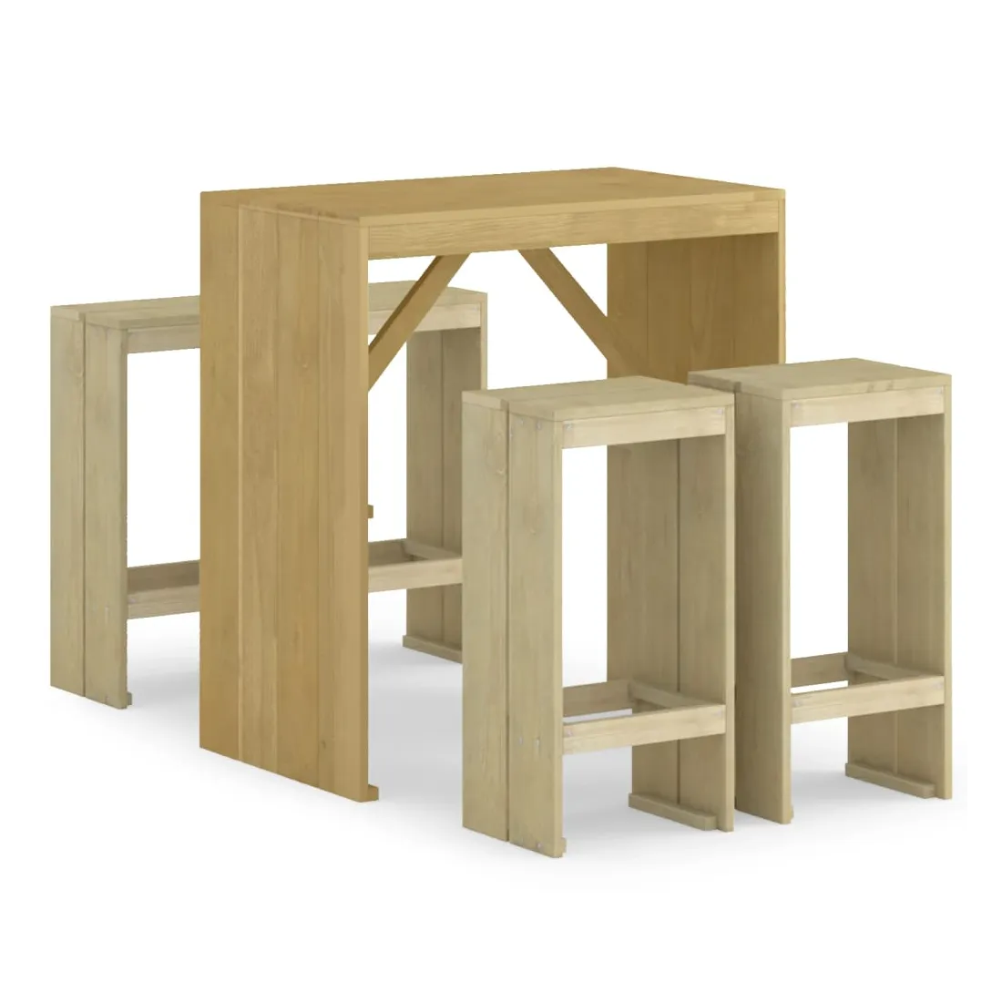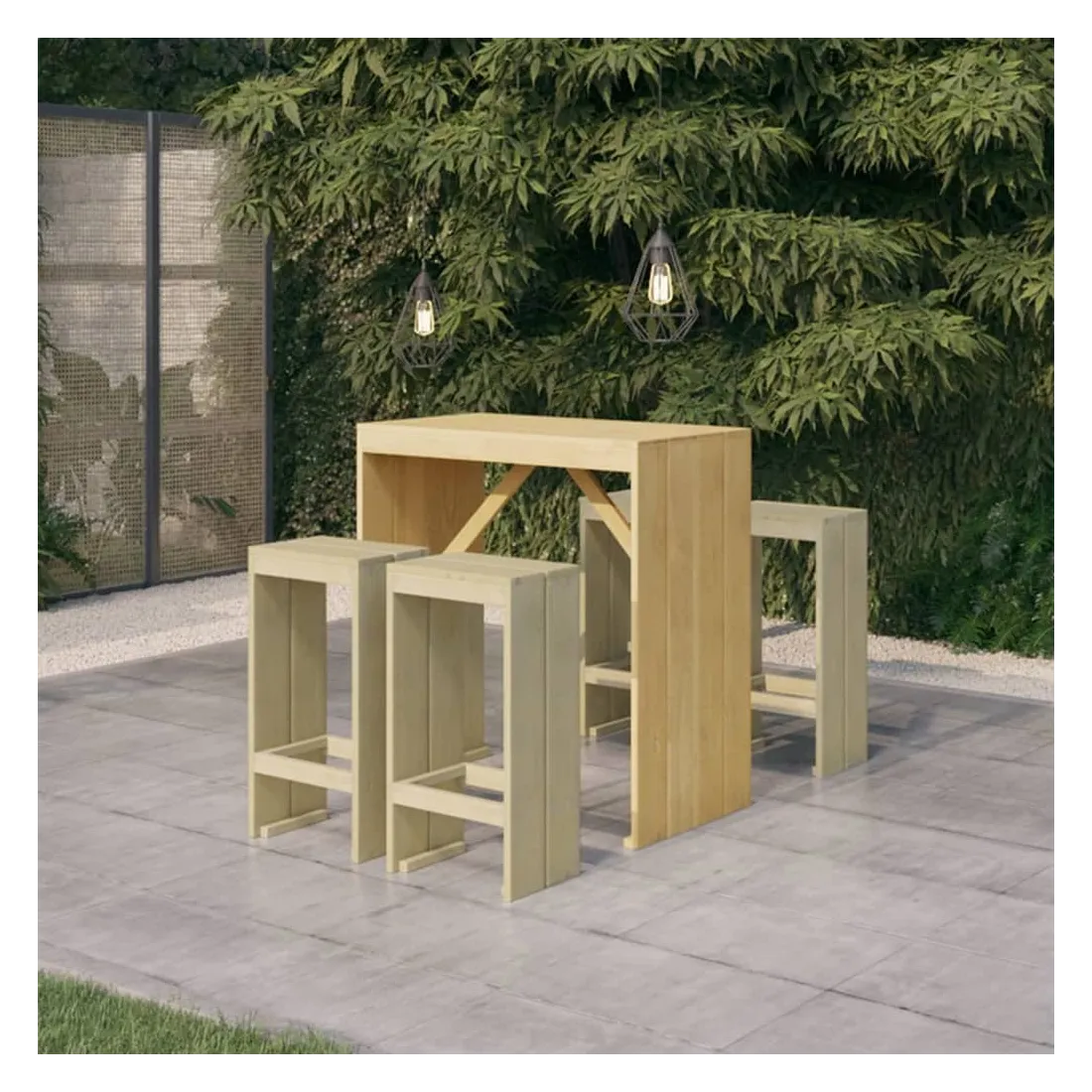 Avec un design élégant mais pratique, cet ensemble de bar de jardin sublime votre espace de vie extérieur ! Fabriqué en bois de pin imprégné de vert, cet ensemble de bar d'extérieur en bois est très solide, durable et résistant à la corrosion. Cet ensemble de meubles est un choix idéal pour les moments de détente dans un jardin de maison de campagne romantique ou près d'un étang de jardin idyllique pour dîner en famille et entre amis. Veuillez noter que le bois est un produit naturel et peut présenter des imperfections. Remarque : afin de prolonger la durée de vie des meubles d'extérieur, nous vous recommandons de les protéger avec une housse imperméable.
