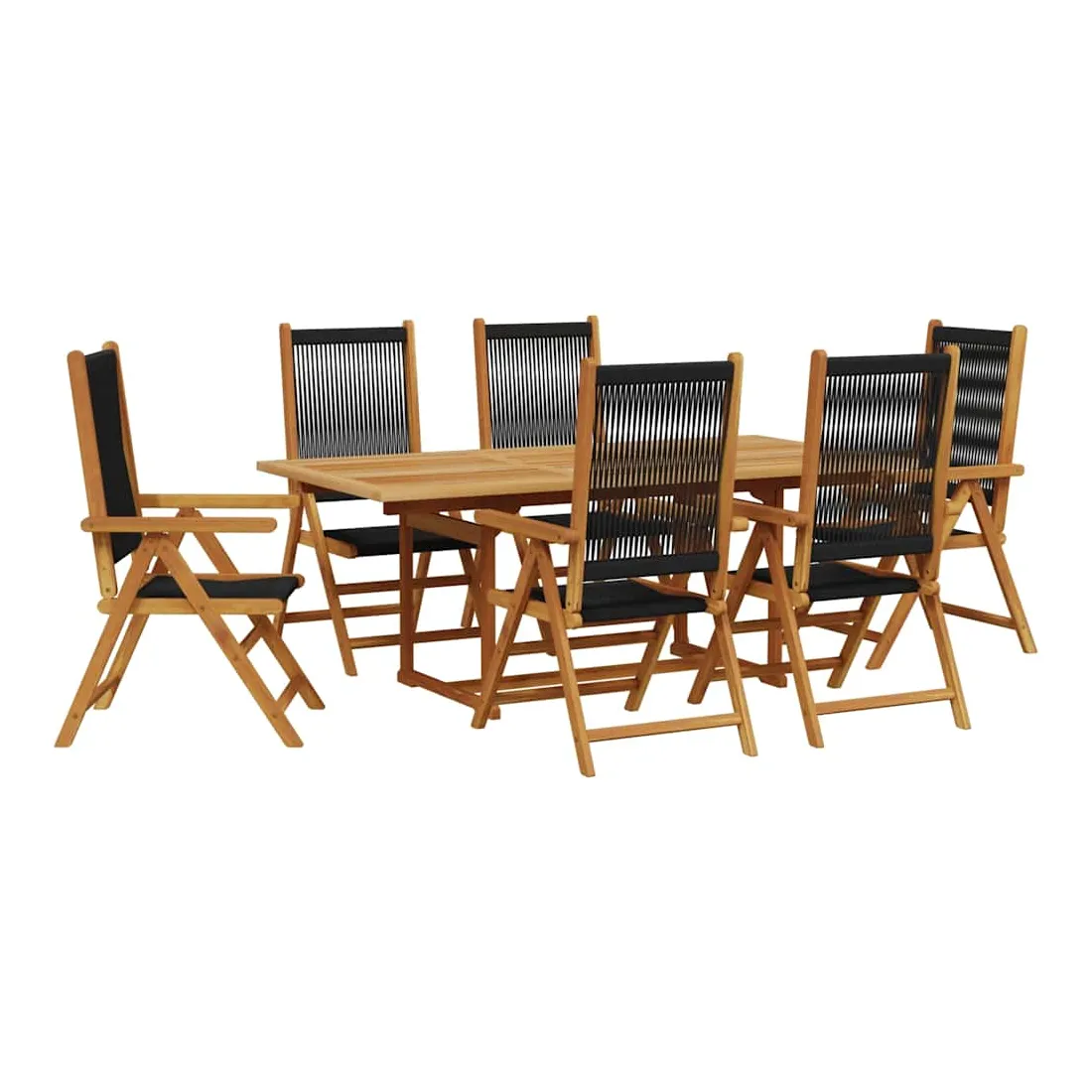 Cet ensemble de salle à manger de jardin est un excellent choix pour les repas en plein air ou pour vous détendre dans le jardin, dans l'arrière-cour ou sur la terrasse. Robuste et stable : le bois d'acacia massif est connu pour sa solidité et sa durabilité. Ses couleurs variées et ses grains uniques lui confèrent un aspect attrayant. Sa stabilité et sa résistance aux intempéries en font un matériau idéal pour la fabrication de meubles d'intérieur et d'extérieur.Matériau durable : la résine tressée, également connue sous le nom de poly rotin, est un matériau synthétique solide et nécessitant peu d'entretien qui ressemble au rotin naturel. Il est léger, facile à nettoyer et couramment utilisé pour les meubles d'extérieur en raison de sa durabilité et de ses propriétés de résistance aux intempéries.Fonction d'inclinaison : le siège de jardin est spécialement conçu avec une fonction d'inclinaison afin que vous puissiez régler le dossier selon votre confort.Dessus de table robuste : la table d'extérieur offre un excellent support pour accueillir vos boissons, collations, corbeilles de fruits et vos décorations préférées.Fonction pratique : les chaises à manger d’extérieur peuvent être repliées pour gagner de la place lorsqu’elles ne sont pas utilisées, tandis que la table de jardin peut être étendue lorsque de l'espace supplémentaire est nécessaire. Bon à savoir :Pour que vos meubles d'extérieur restent beaux, nous vous recommandons de les protéger avec une housse imperméable.