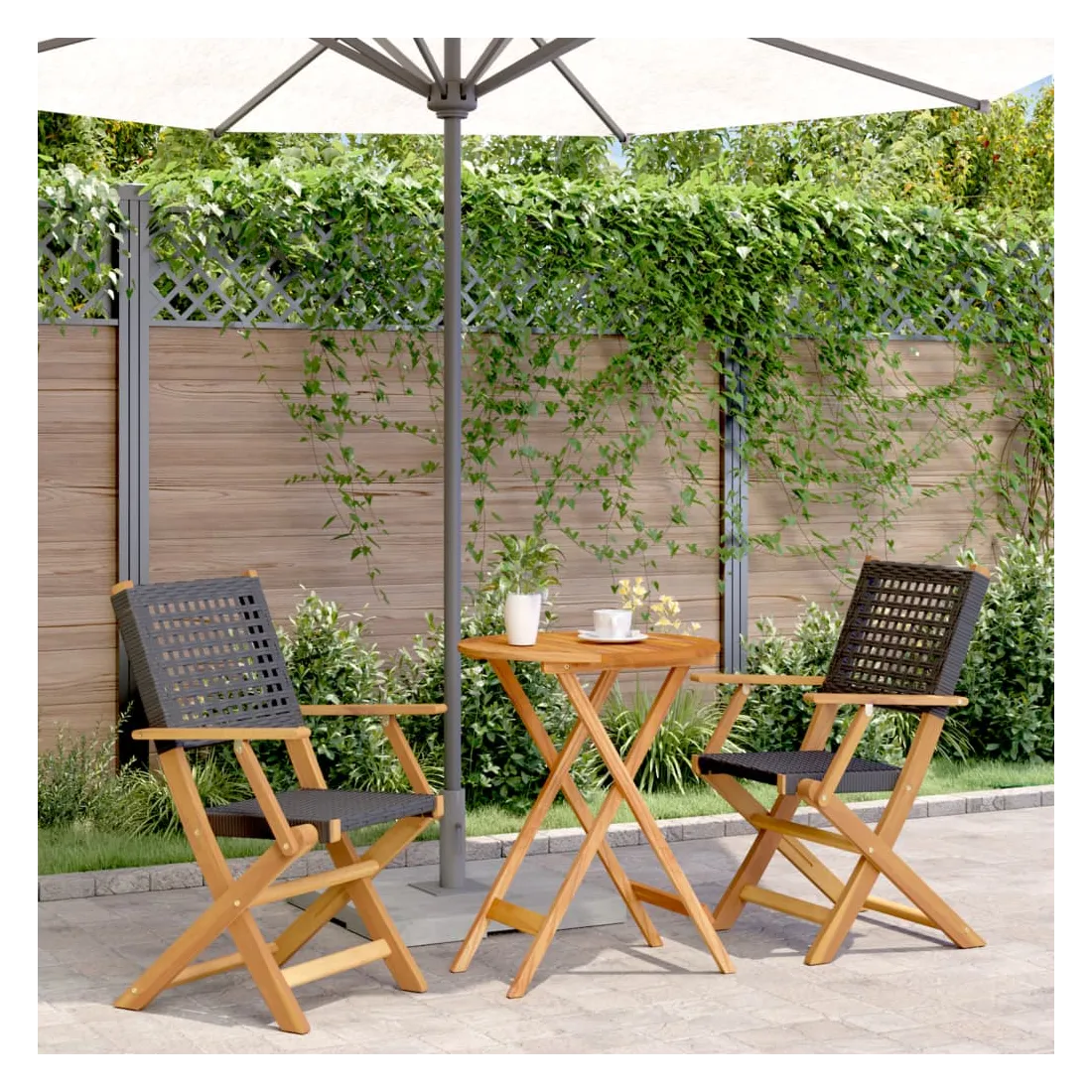 Savourez une tasse de café ou discutez avec votre famille et vos amis dans le jardin, l'arrière-cour ou sur le balcon avec cet ensemble de bistro ! Robuste et stable : le bois d'acacia massif est connu pour sa solidité et sa durabilité. Ses couleurs variées et ses grains uniques lui confèrent un aspect attrayant. Sa stabilité et sa résistance aux intempéries en font un matériau idéal pour la fabrication de meubles d'intérieur et d'extérieur.Matériau durable : la résine tressée, également connue sous le nom de poly rotin, est un matériau synthétique solide et nécessitant peu d'entretien qui ressemble au rotin naturel. Il est léger, facile à nettoyer et couramment utilisé pour les meubles d'extérieur en raison de sa durabilité et de ses propriétés de résistance aux intempéries.Conception pratique : la main courante en bois, pratique et plate, vous permet de poser vos mains dessus tout en profitant d'un moment en plein air.Dessus de table robuste : la table d'extérieur offre un excellent support pour accueillir vos boissons, collations, corbeilles de fruits et vos décorations préférées.Design pliable : la table et les chaises de salle à manger d'extérieur peuvent être facilement repliées lorsqu'elles ne sont pas utilisées pour faciliter le rangement et le transport. Bon à savoir :Pour que vos meubles d'extérieur restent beaux, nous vous recommandons de les protéger avec une housse imperméable.