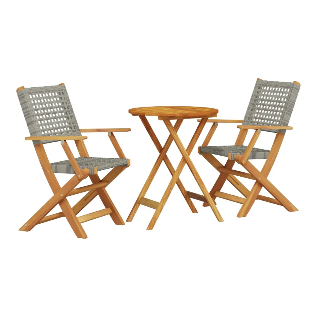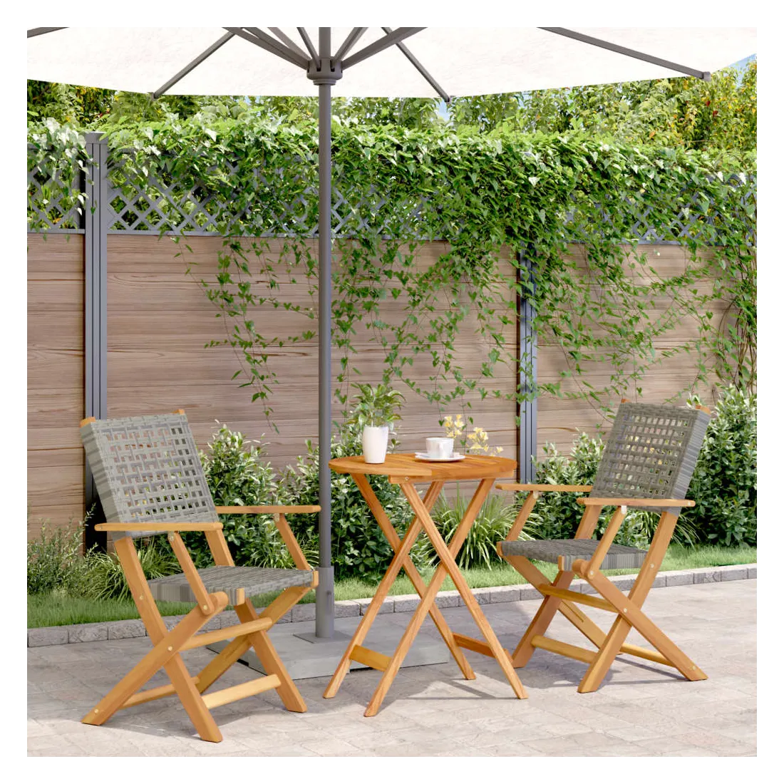 Savourez une tasse de café ou discutez avec votre famille et vos amis dans le jardin, l'arrière-cour ou sur le balcon avec cet ensemble de bistro ! Robuste et stable : le bois d'acacia massif est connu pour sa solidité et sa durabilité. Ses couleurs variées et ses grains uniques lui confèrent un aspect attrayant. Sa stabilité et sa résistance aux intempéries en font un matériau idéal pour la fabrication de meubles d'intérieur et d'extérieur.Matériau durable : la résine tressée, également connue sous le nom de poly rotin, est un matériau synthétique solide et nécessitant peu d'entretien qui ressemble au rotin naturel. Il est léger, facile à nettoyer et couramment utilisé pour les meubles d'extérieur en raison de sa durabilité et de ses propriétés de résistance aux intempéries.Conception pratique : la main courante en bois, pratique et plate, vous permet de poser vos mains dessus tout en profitant d'un moment en plein air.Dessus de table robuste : la table d'extérieur offre un excellent support pour accueillir vos boissons, collations, corbeilles de fruits et vos décorations préférées.Design pliable : la table et les chaises de salle à manger d'extérieur peuvent être facilement repliées lorsqu'elles ne sont pas utilisées pour faciliter le rangement et le transport. Bon à savoir :Pour que vos meubles d'extérieur restent beaux, nous vous recommandons de les protéger avec une housse imperméable.