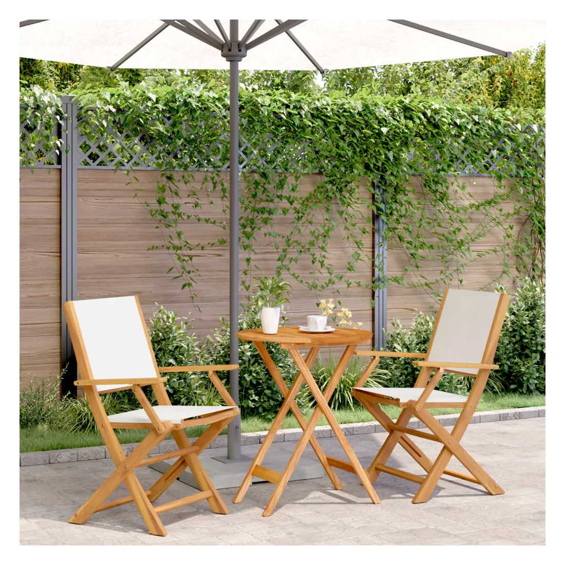 Savourez une tasse de café ou discutez avec votre famille et vos amis dans le jardin, l'arrière-cour ou sur le balcon avec cet ensemble de bistro ! Robuste et stable : le bois d'acacia massif est connu pour sa solidité et sa durabilité. Ses couleurs variées et ses grains uniques lui confèrent un aspect attrayant. Sa stabilité et sa résistance aux intempéries en font un matériau idéal pour la fabrication de meubles d'intérieur et d'extérieur.Conception pratique : la main courante en bois, pratique et plate, vous permet de poser vos mains dessus tout en profitant d'un moment en plein air.Dessus de table robuste : la table d'extérieur offre un excellent support pour accueillir vos boissons, collations, corbeilles de fruits et vos décorations préférées.Design pliable : la table et les chaises de salle à manger d'extérieur peuvent être facilement repliées lorsqu'elles ne sont pas utilisées pour faciliter le rangement et le transport. Bon à savoir :Pour que vos meubles d'extérieur restent beaux, nous vous recommandons de les protéger avec une housse imperméable.