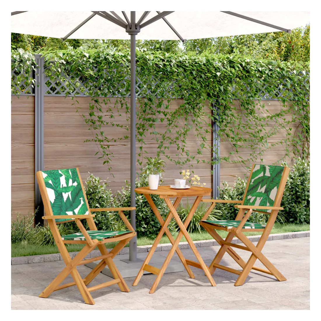 Savourez une tasse de café ou discutez avec votre famille et vos amis dans le jardin, l'arrière-cour ou sur le balcon avec cet ensemble de bistro ! Robuste et stable : le bois d'acacia massif est connu pour sa solidité et sa durabilité. Ses couleurs variées et ses grains uniques lui confèrent un aspect attrayant. Sa stabilité et sa résistance aux intempéries en font un matériau idéal pour la fabrication de meubles d'intérieur et d'extérieur.Conception pratique : la main courante en bois, pratique et plate, vous permet de poser vos mains dessus tout en profitant d'un moment en plein air.Dessus de table robuste : la table d'extérieur offre un excellent support pour accueillir vos boissons, collations, corbeilles de fruits et vos décorations préférées.Design pliable : la table et les chaises de salle à manger d'extérieur peuvent être facilement repliées lorsqu'elles ne sont pas utilisées pour faciliter le rangement et le transport. Bon à savoir :Pour que vos meubles d'extérieur restent beaux, nous vous recommandons de les protéger avec une housse imperméable.