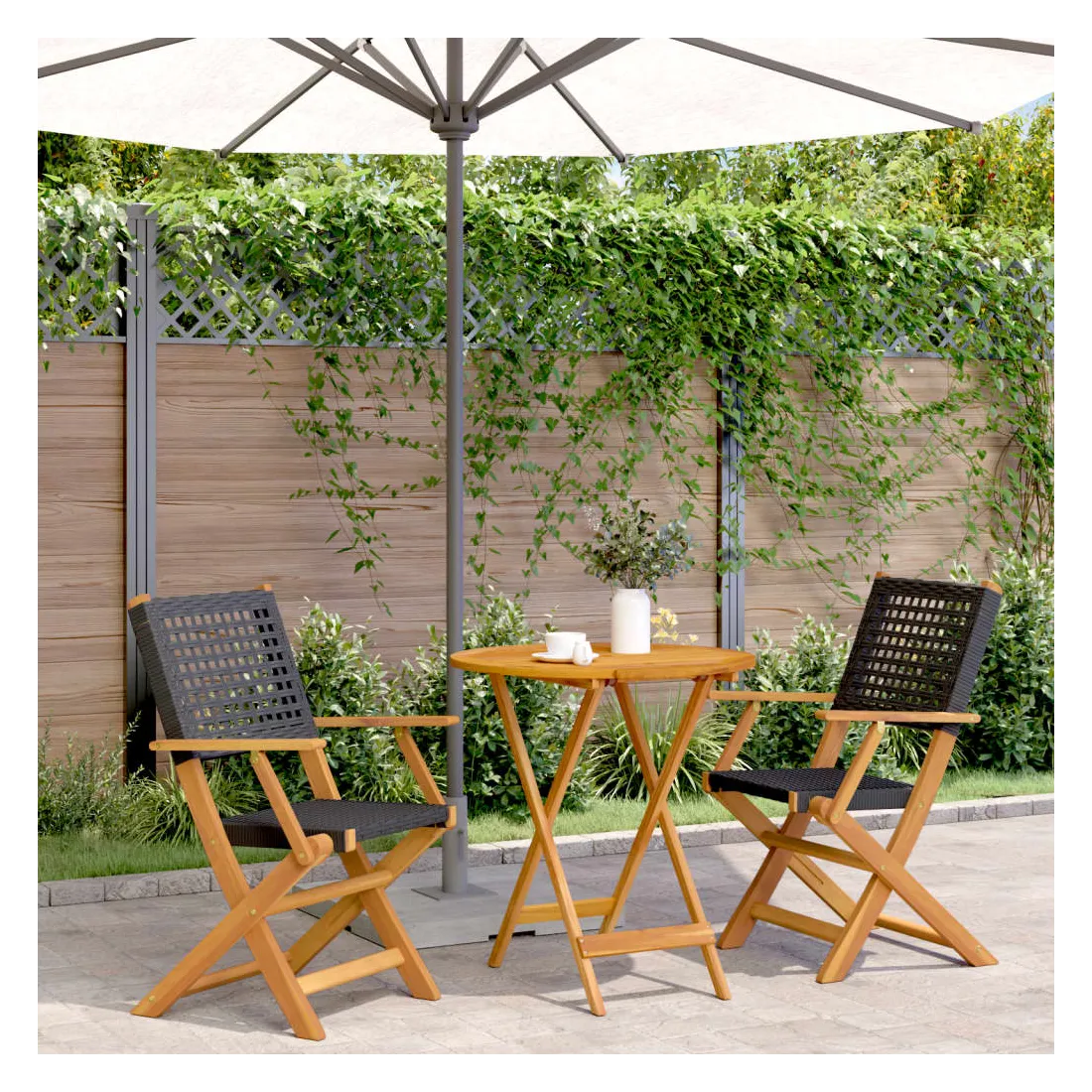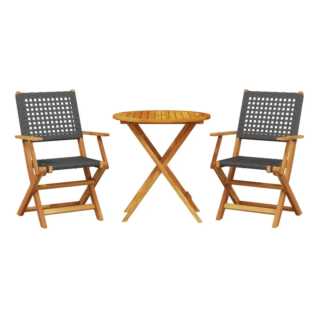 Savourez une tasse de café ou discutez avec votre famille et vos amis dans le jardin, l'arrière-cour ou sur le balcon avec cet ensemble de bistro ! Robuste et stable : le bois d'acacia massif est connu pour sa solidité et sa durabilité. Ses couleurs variées et ses grains uniques lui confèrent un aspect attrayant. Sa stabilité et sa résistance aux intempéries en font un matériau idéal pour la fabrication de meubles d'intérieur et d'extérieur.Matériau durable : la résine tressée, également connue sous le nom de poly rotin, est un matériau synthétique solide et nécessitant peu d'entretien qui ressemble au rotin naturel. Il est léger, facile à nettoyer et couramment utilisé pour les meubles d'extérieur en raison de sa durabilité et de ses propriétés de résistance aux intempéries.Conception pratique : la main courante en bois, pratique et plate, vous permet de poser vos mains dessus tout en profitant d'un moment en plein air.Dessus de table robuste : la table d'extérieur offre un excellent support pour accueillir vos boissons, collations, corbeilles de fruits et vos décorations préférées.Design pliable : la table et les chaises de salle à manger d'extérieur peuvent être facilement repliées lorsqu'elles ne sont pas utilisées pour faciliter le rangement et le transport. Bon à savoir :Pour que vos meubles d'extérieur restent beaux, nous vous recommandons de les protéger avec une housse imperméable.