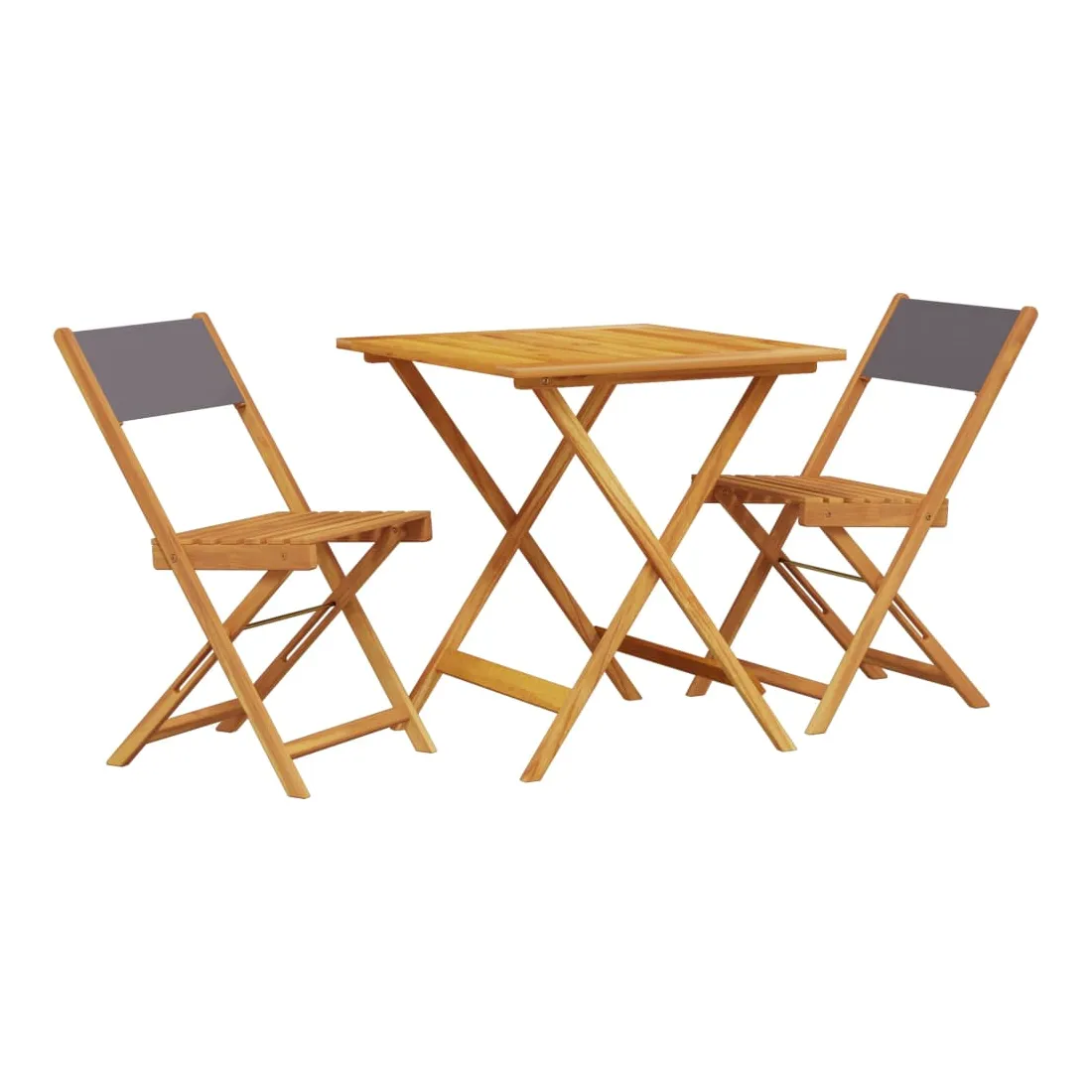 Savourez une tasse de café ou discutez avec votre famille et vos amis dans le jardin, l'arrière-cour ou sur le balcon avec cet ensemble de bistro ! Robuste et stable : le bois d'acacia massif est connu pour sa solidité et sa durabilité. Ses couleurs variées et ses grains uniques lui confèrent un aspect attrayant. Sa stabilité et sa résistance aux intempéries en font un matériau idéal pour la fabrication de meubles d'intérieur et d'extérieur.Conception pratique : la chaise d'extérieur ne comporte pas d'accoudoir, mais uniquement un dossier, ce qui vous permet d'être plus libre de vos mouvements tout en bénéficiant d'un grand confort.Dessus de table robuste : la table d'extérieur offre un excellent support pour accueillir vos boissons, collations, corbeilles de fruits et vos décorations préférées.Design pliable : la table et les chaises de salle à manger d'extérieur peuvent être facilement repliées lorsqu'elles ne sont pas utilisées pour faciliter le rangement et le transport. Bon à savoir :Pour que vos meubles d'extérieur restent beaux, nous vous recommandons de les protéger avec une housse imperméable.