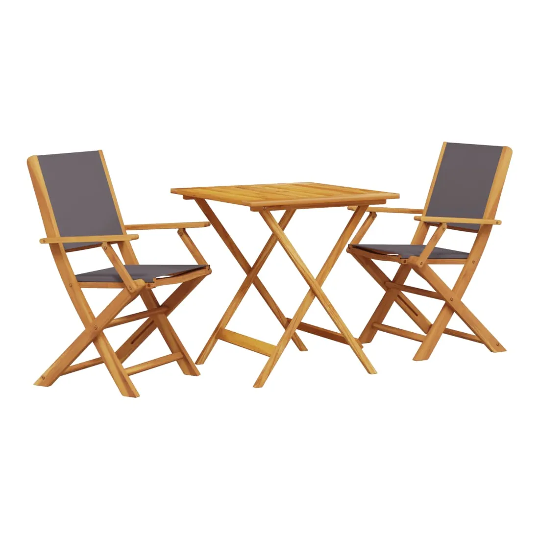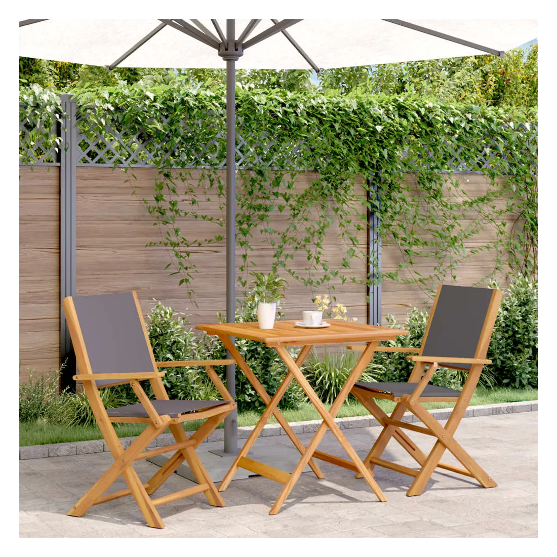 Savourez une tasse de café ou discutez avec votre famille et vos amis dans le jardin, l'arrière-cour ou sur le balcon avec cet ensemble de bistro ! Robuste et stable : le bois d'acacia massif est connu pour sa solidité et sa durabilité. Ses couleurs variées et ses grains uniques lui confèrent un aspect attrayant. Sa stabilité et sa résistance aux intempéries en font un matériau idéal pour la fabrication de meubles d'intérieur et d'extérieur.Conception pratique : la main courante en bois, pratique et plate, vous permet de poser vos mains dessus tout en profitant d'un moment en plein air.Dessus de table robuste : la table d'extérieur offre un excellent support pour accueillir vos boissons, collations, corbeilles de fruits et vos décorations préférées.Design pliable : la table et les chaises de salle à manger d'extérieur peuvent être facilement repliées lorsqu'elles ne sont pas utilisées pour faciliter le rangement et le transport. Bon à savoir :Pour que vos meubles d'extérieur restent beaux, nous vous recommandons de les protéger avec une housse imperméable.