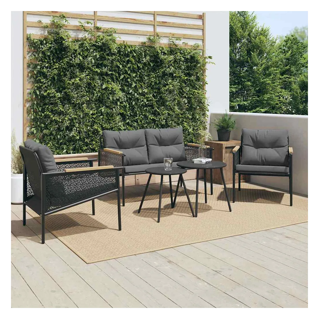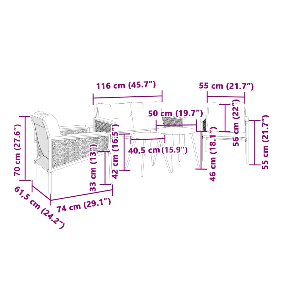 Cet ensemble de meubles de balcon est le complément parfait de votre arrière-cour, terrasse ou patio, offrant un espace confortable et accueillant pour discuter avec la famille et les amis ou simplement se détendre et profiter de l'extérieur. Durable et longue durée de vie : le tissu textilène est apprécié pour sa durabilité, résistance à l'eau et à la décoloration, facilité d'entretien et protection contre les rayons UV et la moisissure, ce qui en fait un choix idéal pour le meuble d'extérieur et les structures d'ombrage.Expérience d'assise confortable : ce mobilier d'extérieur, doté de coussins épais, offre une expérience d'assise confortable.Dessus de table robuste : la table de cet ensemble de meubles de jardin d'extérieur est dotée d'un dessus robuste, idéal pour placer vos boissons ou tout autre article dont vous avez besoin à portée de main.Housse amovible et lavable : ces coussins de siège sont dotés de housses amovibles pour un lavage et un entretien faciles.Cadre robuste et stable : le cadre en acier enduit de poudre assure la solidité et la stabilité du meuble de jardin pour une utilisation quotidienne à l'extérieur. Bon à savoir :Pour que vos meubles d'extérieur restent beaux, nous vous recommandons de les protéger avec une housse imperméable.