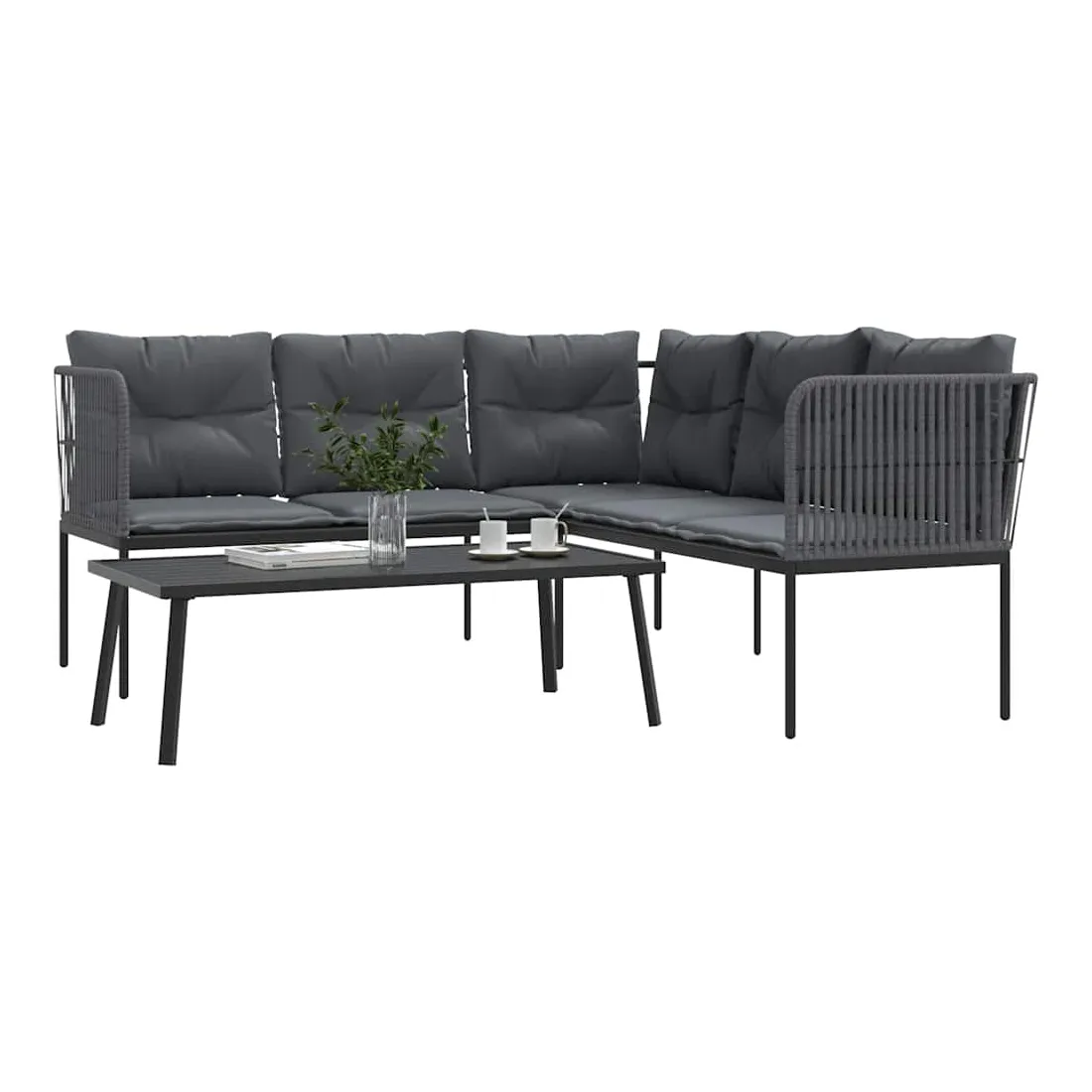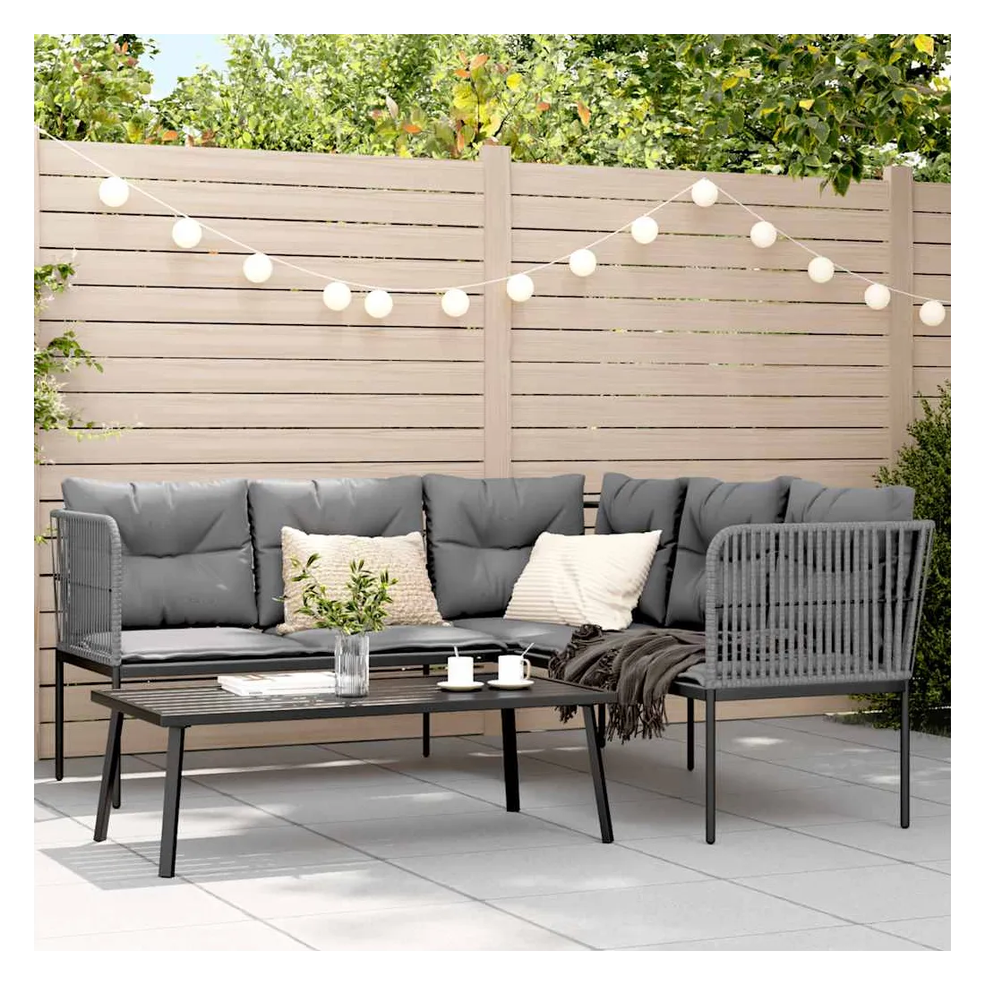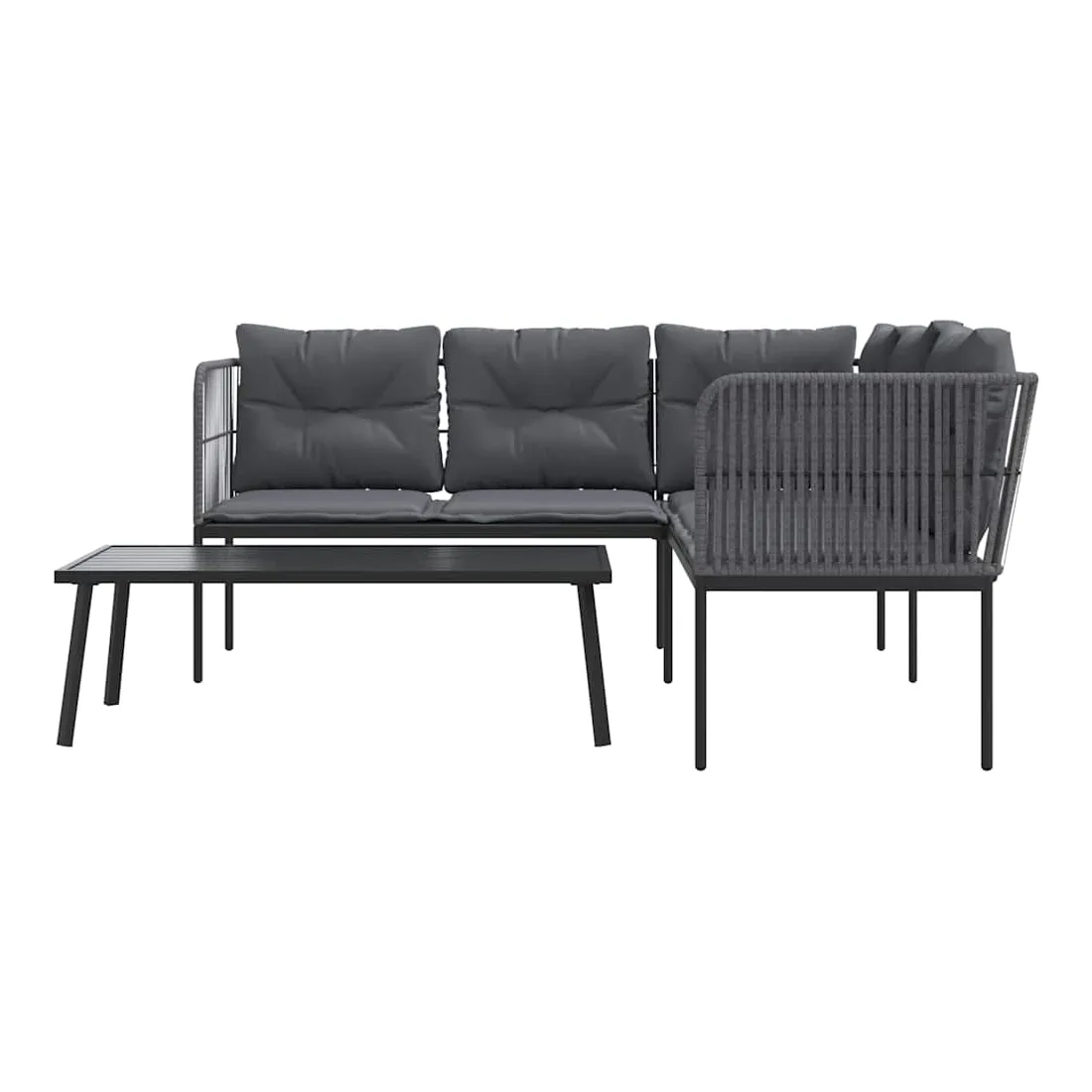 Cet ensemble de canapés de jardin est le complément parfait de votre jardin, terrasse ou patio, offrant un espace confortable et accueillant pour discuter avec la famille et les amis ou simplement se détendre et profiter de l'extérieur. Cadre robuste et stable : le cadre en acier enduit de poudre assure la solidité et la stabilité du meuble de jardin pour une utilisation quotidienne à l'extérieur.Durable et longue durée de vie : le tissu textilène est apprécié pour sa durabilité, résistance à l'eau et à la décoloration, facilité d'entretien et protection contre les rayons UV et la moisissure, ce qui en fait un choix idéal pour le meuble d'extérieur et les structures d'ombrage.Expérience d'assise confortable : ce mobilier d'extérieur, doté de coussins épais, offre une expérience d'assise confortable.Housse amovible et lavable : ces coussins de siège sont dotés de housses amovibles pour un lavage et un entretien faciles.Dessus robuste : le dessus robuste de la table de patio est idéal pour placer vos boissons ou tout autre article dont vous avez besoin à portée de main. Bon à savoir :Pour que vos meubles d'extérieur restent beaux, nous vous recommandons de les protéger avec une housse imperméable.