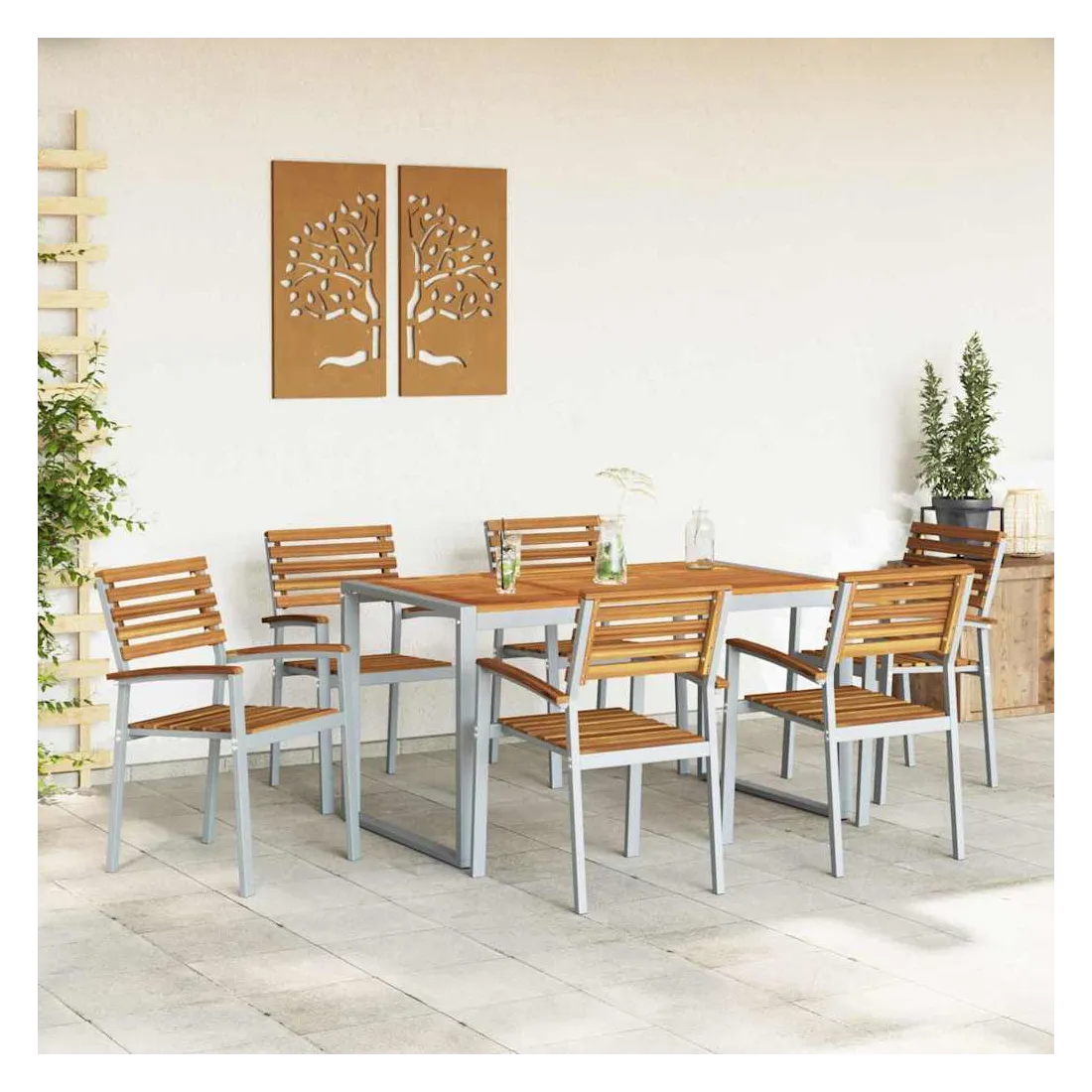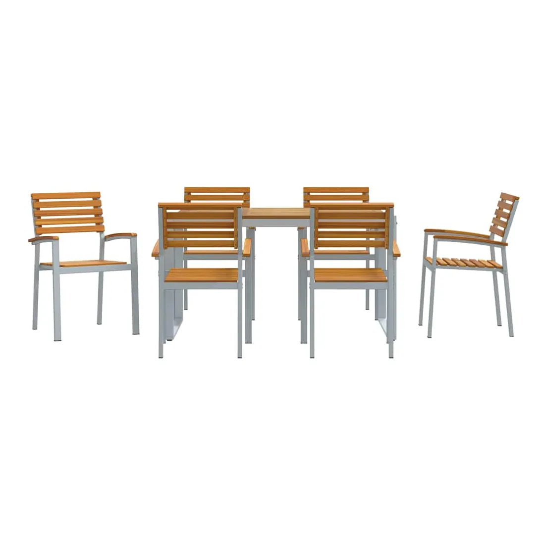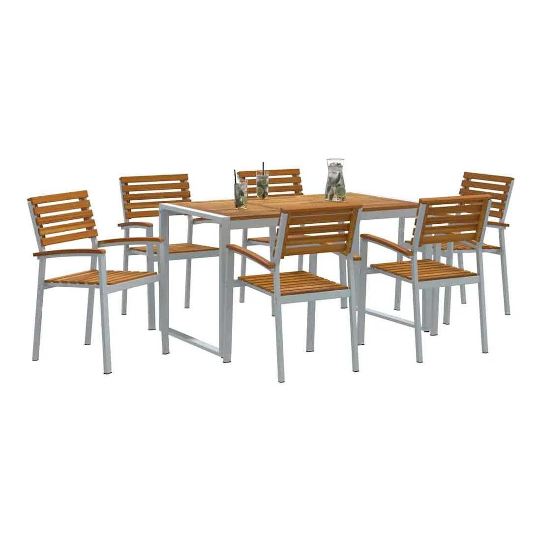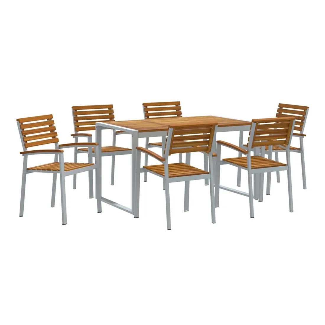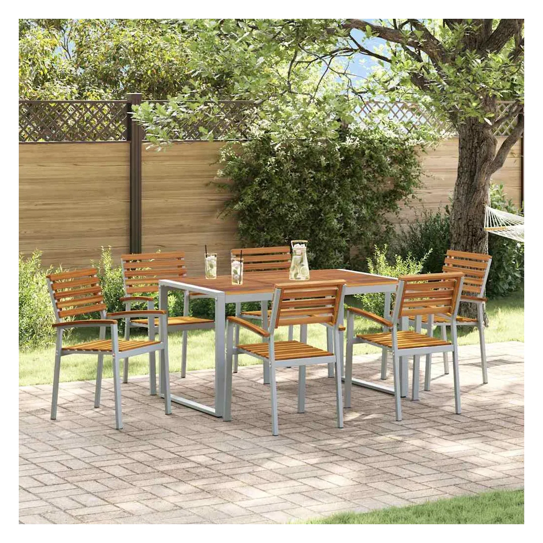 Ce set de salle à manger pour le jardin est stylish et tout en modernité. Il est fait pour les brunchs du dimanche ou les dîners plus formels. Fabriqué en bois d'acacia et en acier, il est robuste. Sa forme rectangulaire et ses couleurs chic sont idéales pour les jardins modernes, créant une ambiance chaleureuse pour des retrouvailles en famille ou entre amis. Matériaux : Fait en bois d'acacia de première qualité, qui est super beau et super résistant. Cet ensemble assure une excellent structure et un aspect naturel qui ira bien avec ton jardin. Les parties en acier ajoutent une touche de solidité, parfait pour une utilisation quotidienne. Composants Inclus : Avec une finition lisse, ce set a une grande table en acacia qui peut facilement accueillir six personnes. Les accoudoirs et le dos confortable ajoutent un petit plus pour des repas agréables en pleine nature. Fonctionnalités /Fonction /Design : Avec son style moderne, cet ensemble a des lignes simples qui le rendent esthétique et pratique. Chaque pièce est bien fabriquée, ce qui en fait un excellent choix pour ton espace extérieur. Utilisations Recommandées : Parfait pour les jardins et terrasses, il s'adapte à différents endroits. Idéal pour des brunchs, dîners ou rencontres tranquilles. Entretien &Maintenance : Pratique à entretenir, il suffit d'un chiffon pour enlever la poussière et le garder en bon état. Suivre ces conseils te permettra de le garder beau toute l'année.