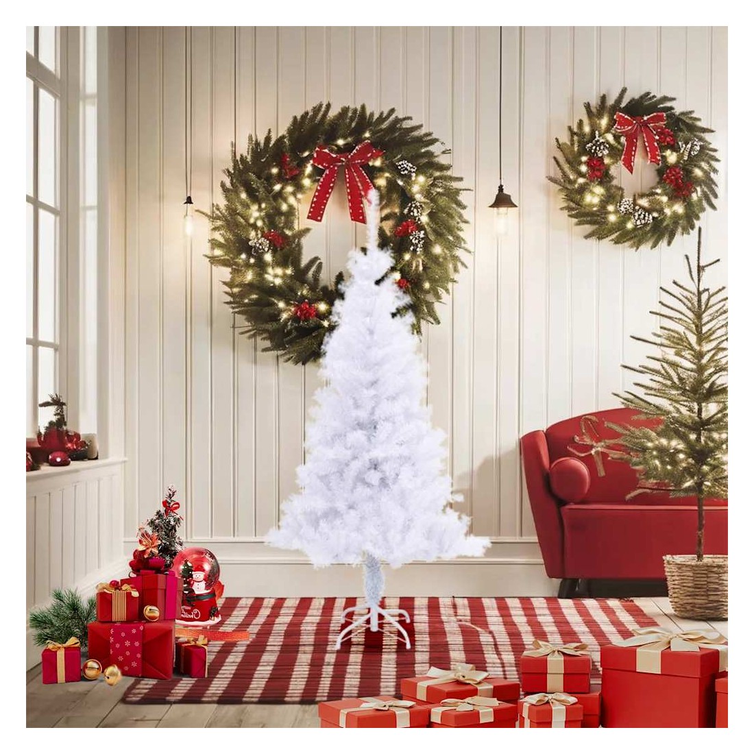 Cet arbre de Noël magnifique et épais avec 380 branches ressemble comme s'il est recouvert d'une épaisse couverture de neige. Cet arbre de Noël blanc pur constituera la pièce de résistance frappante de vos décorations de Noël. Fait en PVC de qualité, il ressemble à un arbre de Noël véritable. L'arbre de Noël peut être utilisé à nouveau chaque année, ce qui en fait un choix très économique par rapport à un arbre réel. Il peut être utilisé tant à l'intérieur qu'à l'extérieur sous abri. Cet arbre de Noël est facile à monter, grâce à son système à brancher simple. Créez une atmosphère unique de Noël dans votre maison ! La livraison comprend également un support stable en plastique.