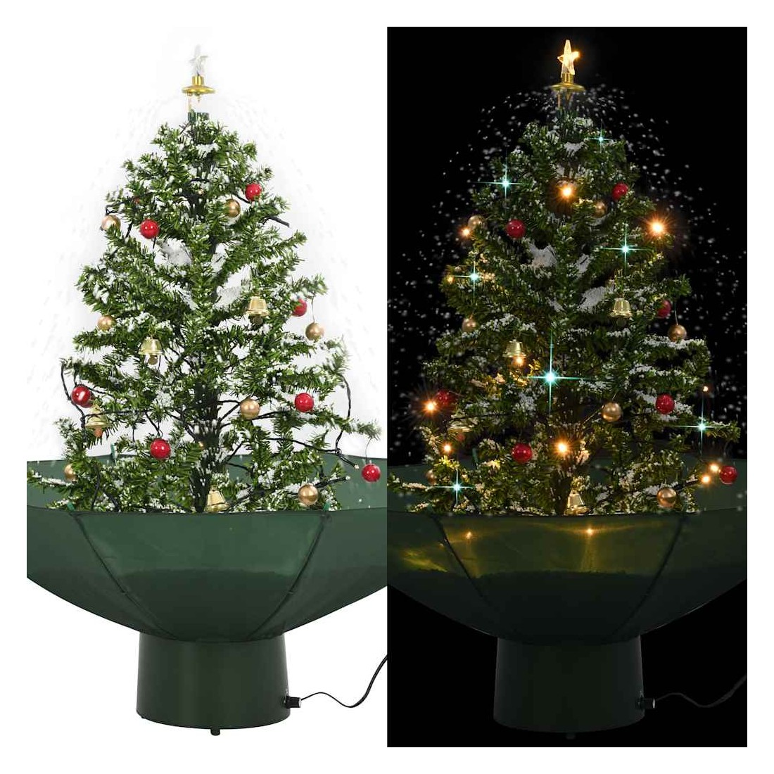 Cet arbre de Noël enneigé avec des boules de Noël et des lumières sera la pièce maîtresse de vos décorations de Noël. Ressemblant à une texture authentique, cet arbre de Noël artificiel se caractérise par des branches réalistes. Il comprend une mélodie joyeuse, des ornements de fête, des lumières et de la fausse neige qui tombera majestueusement de l’arbre une fois allumé, ce qui crée une atmosphère idéale pour le festival. La pompe intégrée transfère la neige de la base et continue de la pulvériser par le haut ; la base en forme de parapluie inclus ramassera la neige et avec un contrôle vous réglez le taux de chute de neige, d'un doux saupoudrage à un joyeux tourbillon de blanc, de sorte que vous puissiez passer tout Noël, même tout l'hiver, à regarder la neige tomber et se couvrir les branches. De plus, léger et durable, le sapin de Noël peut être utilisé chaque année, ce qui en fait un choix très économique par rapport à un vrai arbre. L'arbre de Noël est facile à assembler car il dispose d'un système de plug-in simple. Créez une atmosphère de Noël unique dans votre maison ! C'est un spectacle que les amis et la famille vont adorer.
