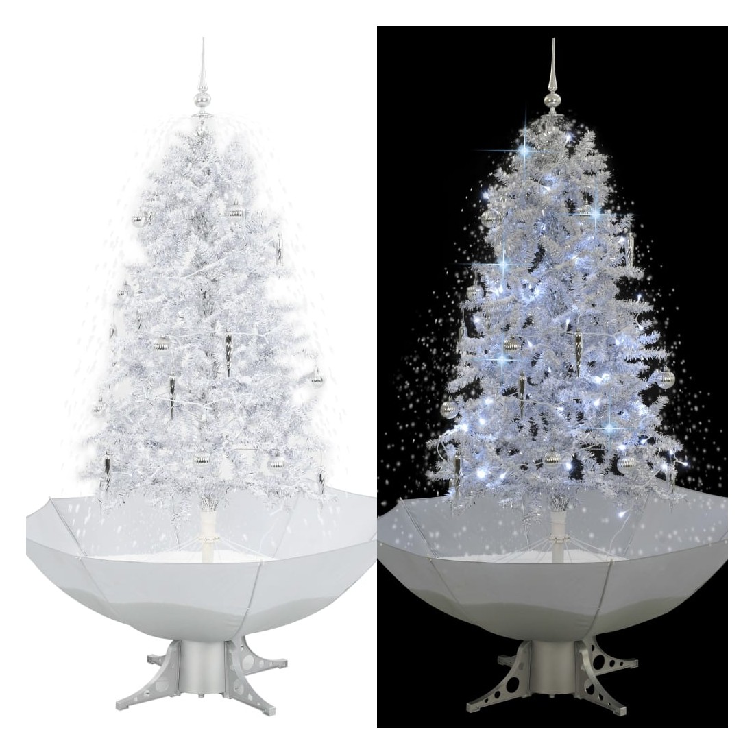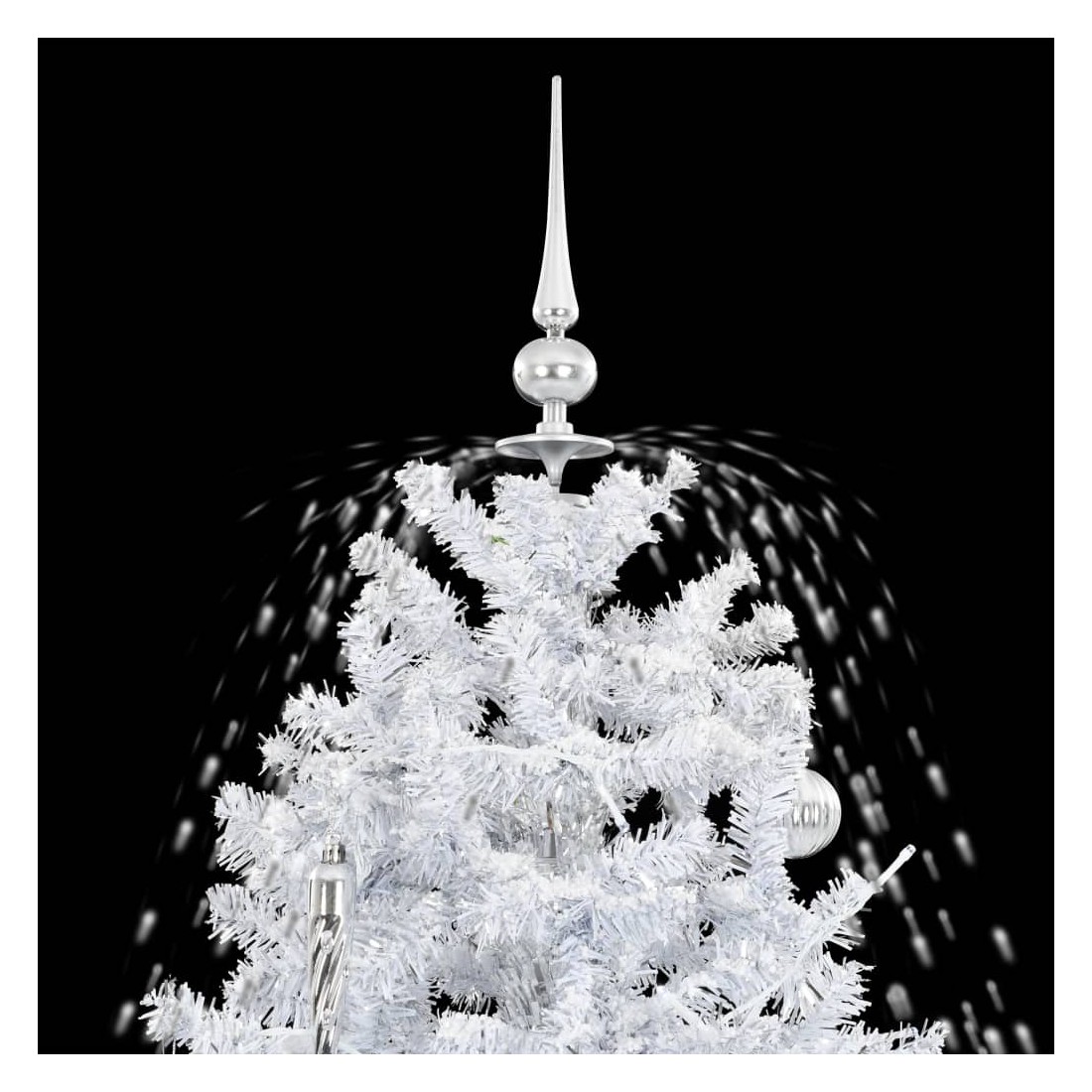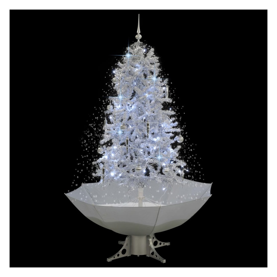 Cet arbre de Noël enneigé avec des boules de Noël et des lumières sera la pièce maîtresse de vos décorations de Noël. Ressemblant à une texture authentique, cet arbre de Noël artificiel se caractérise par des branches réalistes. Il comprend une mélodie joyeuse, des ornements de fête, des lumières et de la fausse neige qui tombera majestueusement de l’arbre une fois allumé, ce qui crée une atmosphère idéale pour le festival. La pompe intégrée transfère la neige de la base et continue de la pulvériser par le haut ; la base en forme de parapluie inclus ramassera la neige et avec un contrôle vous réglez le taux de chute de neige, d'un doux saupoudrage à un joyeux tourbillon de blanc, de sorte que vous puissiez passer tout Noël, même tout l'hiver, à regarder la neige tomber et se couvrir le
