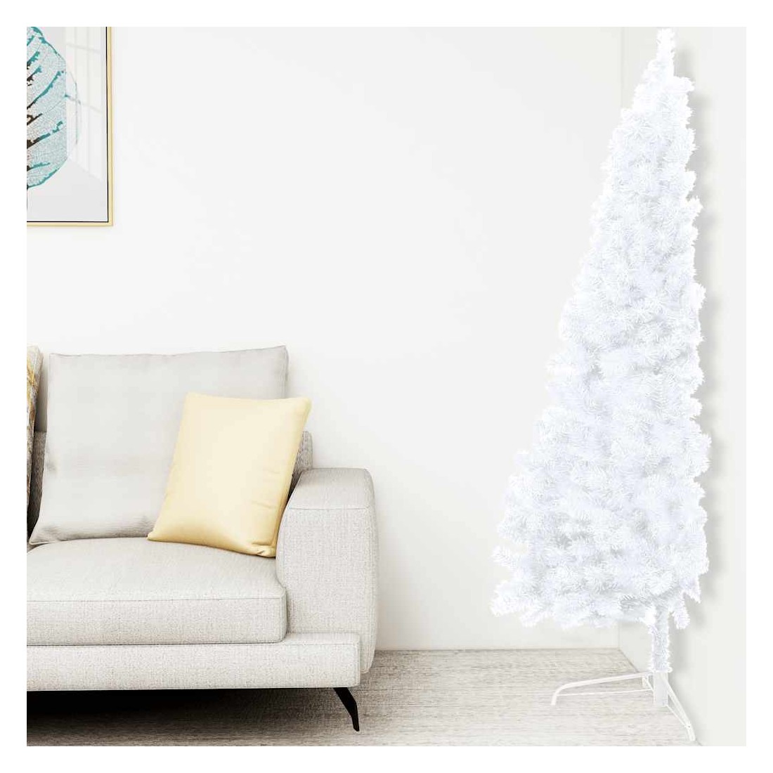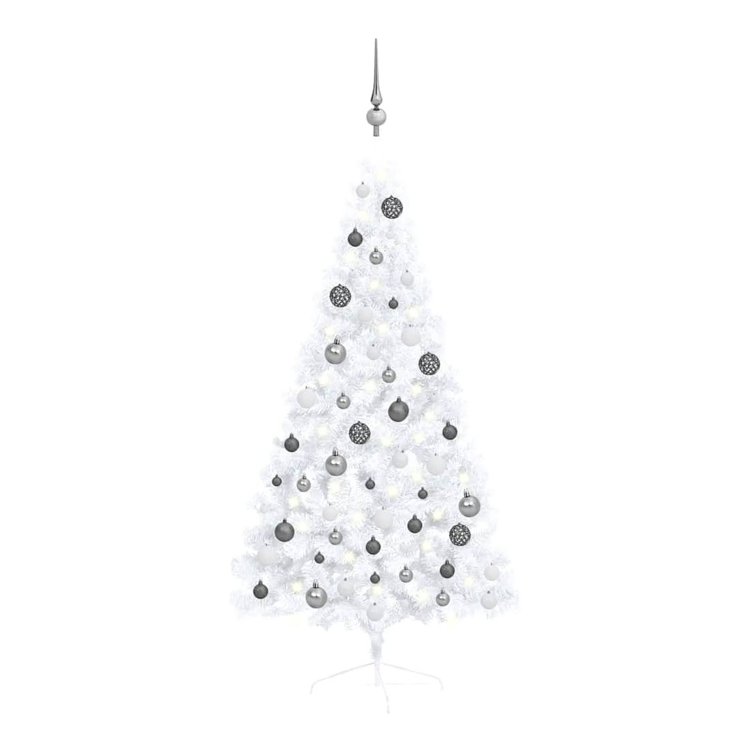 Demi-arbre de Noël artificiel pré-éclairé et boules blanc 150cm