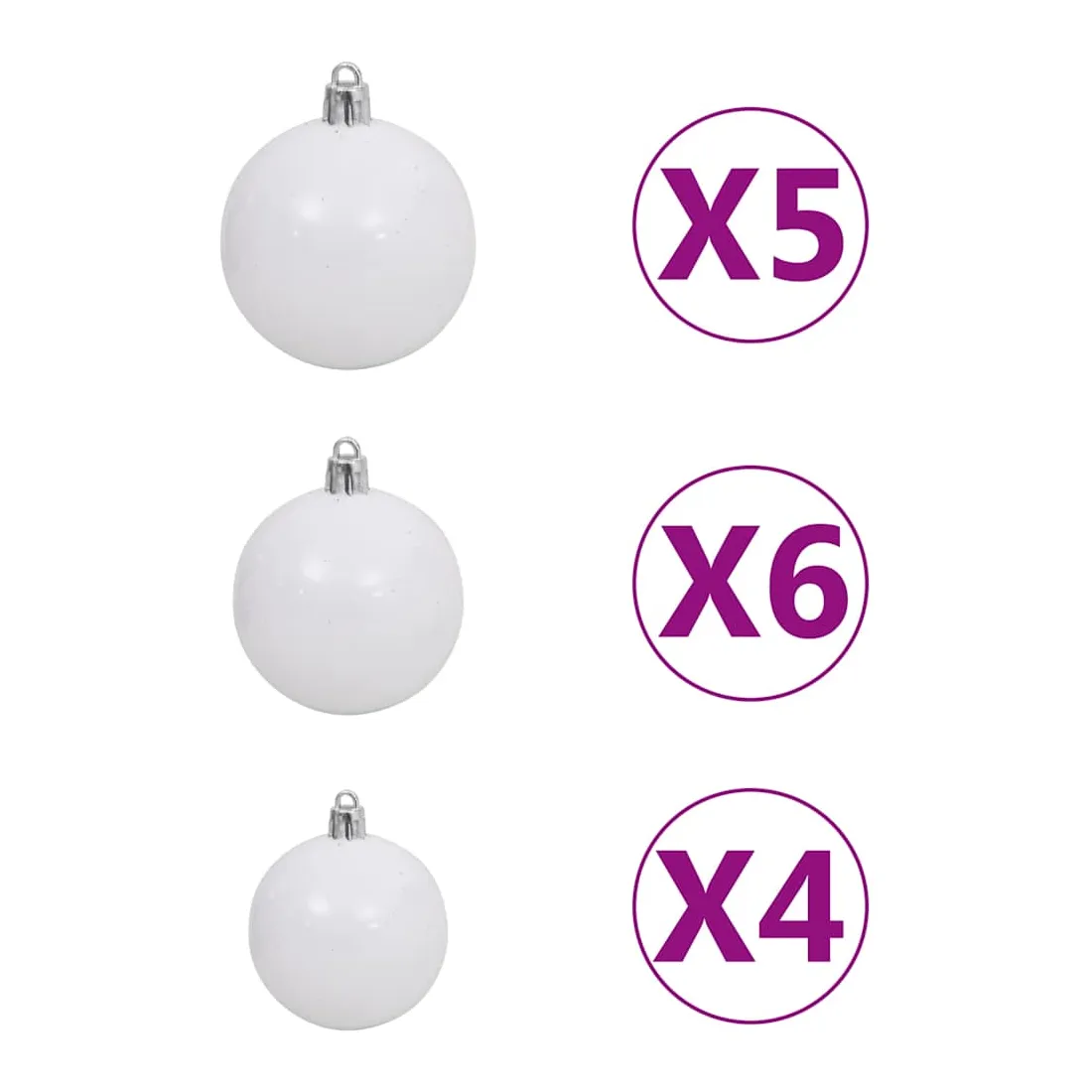 vidaXLCet arbre de Noël vous donne la même impression que celui réel. Il peut être rapidement et facilement assemblé. L'arbre de Noël a plus de 540 différentes branches blanches, toutes peuvent être alignées individuellement. Plusieurs branches ont des pointes blanches. Les pommes de pin et les pointes blanches incluses font de cet arbre la décoration parfaite pour les fêtes de Noël. L'arbre de Noël se pose sur une base solide pour une stabilité optimale. À la fin des fêtes de Noël, vous pouvez désassembler l'arbre de sorte que vous puissiez le ranger pour gagner plus d'espace, prêt à l'utiliser pour l'année prochaine. L'arbre de Noël artificiel est durable et utilisable pendant des années, il n'est donc pas nécessaire de couper un arbre réel chaque année. Il est également économique parce que vous avez seulement besoin d'un arbre pendant des années qui réduira vos coûts au fil des ans. Doté de lumières LED éconergétiques, il éclaire magnifiquement et crée une ambiance de vacances agréable. De plus, décoré d'un magnifique pic et de boules, cet arbre de Noël attirera tous les regards dans votre maison. Remarque : ce produit est doté d'un connecteur USB, mais la source d'alimentation certifiée de USB 5V n'est pas incluse.