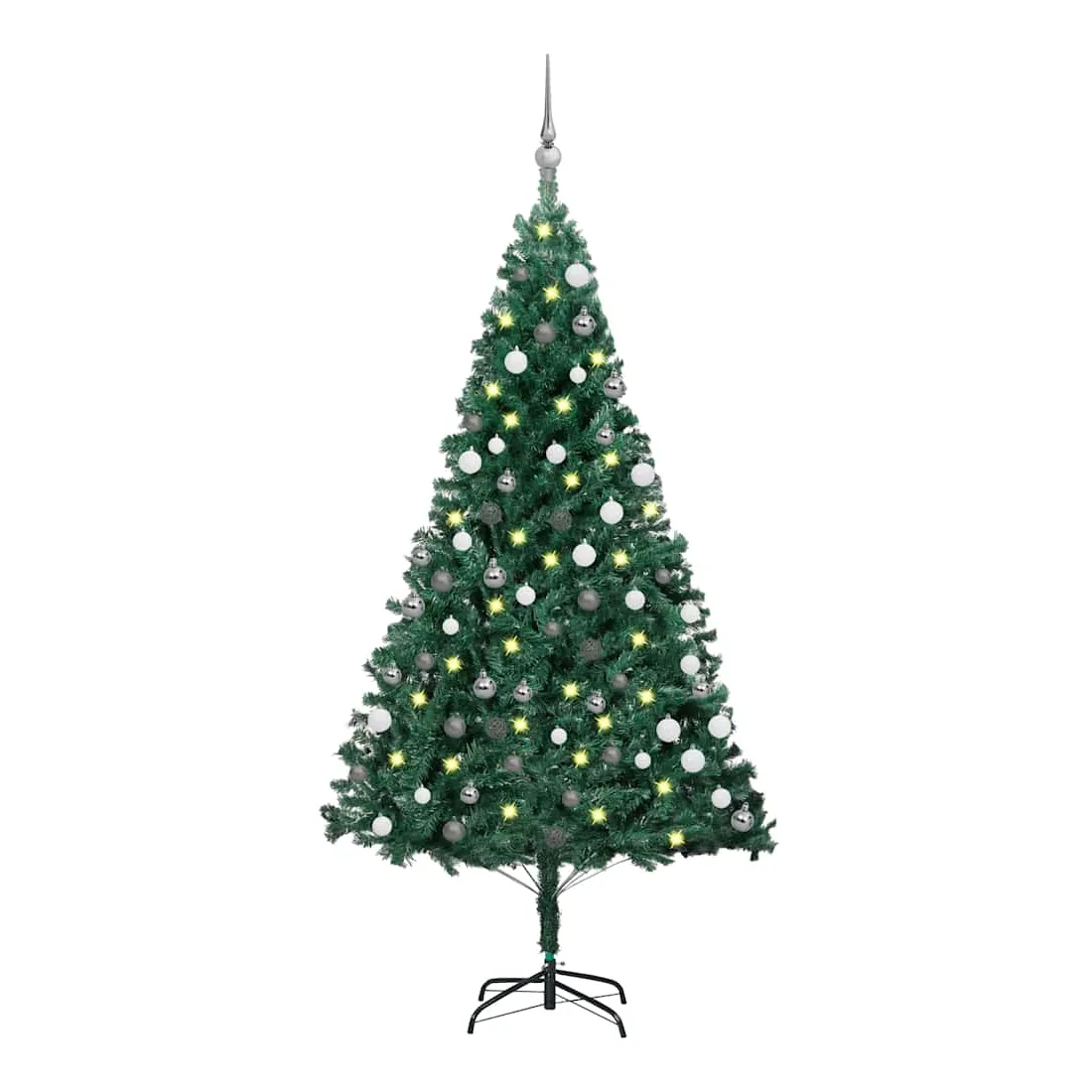 Arbre de Noël artificiel pré-éclairé et boules vert 150 cm PVC