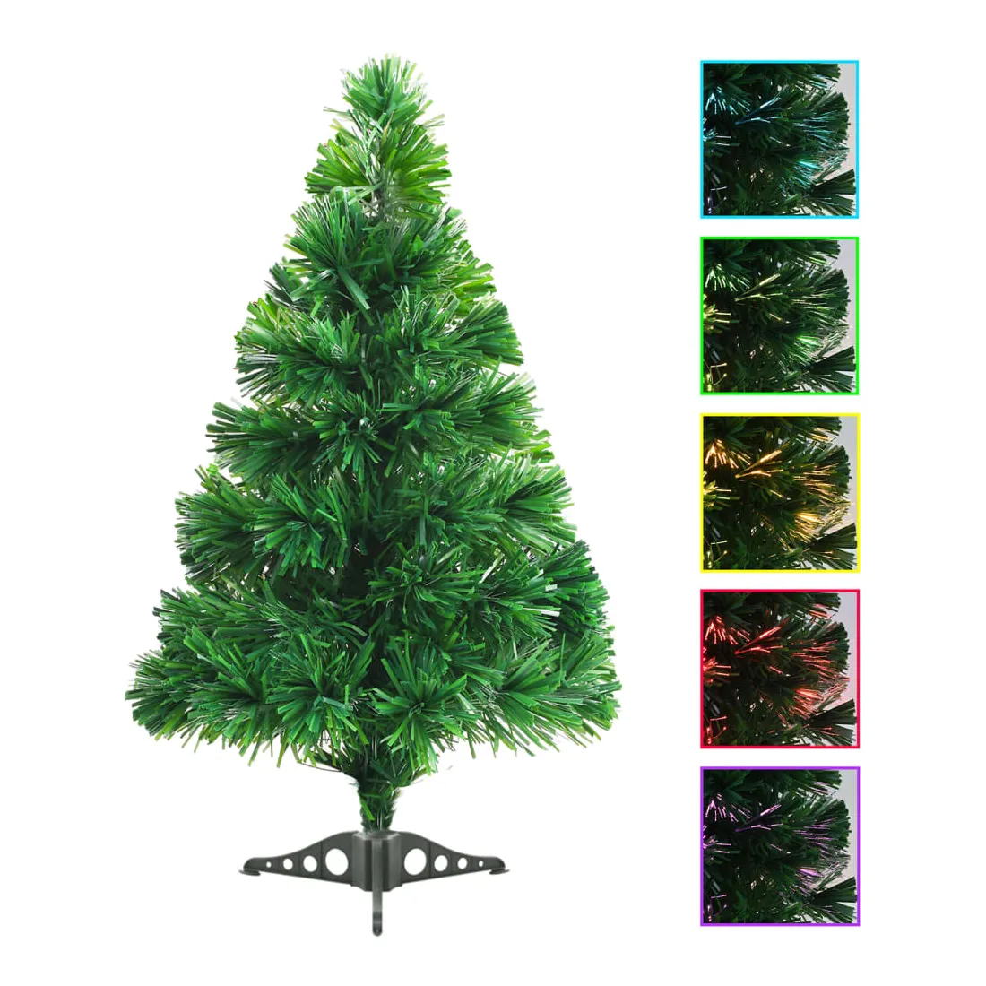 Ce petit arbre de Noël artificiel doté de spectaculaires lumières à fibres optiques est très beau et créera une atmosphère agréable. Grâce à l'utilisation de la fibre optique moderne, cet arbre de Noël artificiel s'illumine en cinq couleurs différentes (rouge, jaune, vert, bleu et violet) qui changent constamment pour un effet de fête et d'éclat. La technologie de fibre optique consomme très peu d'énergie, ce qui entraîne une faible consommation d'énergie. Le sapin de Noël peut être utilisé chaque année, ce qui en fait un choix très économique par rapport à un vrai arbre. Cet arbre est adapté à une utilisation à l'intérieur. L'assemblage est facile. Amusez-vous pendant vos vacances avec notre beau sapin de Noël ! Remarque : ce produit est doté d'un connecteur USB, mais la source d'alim