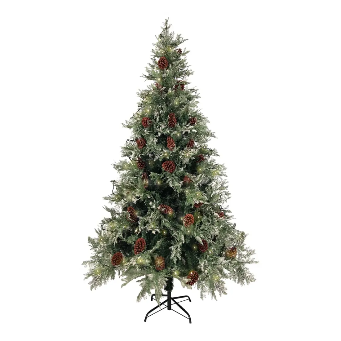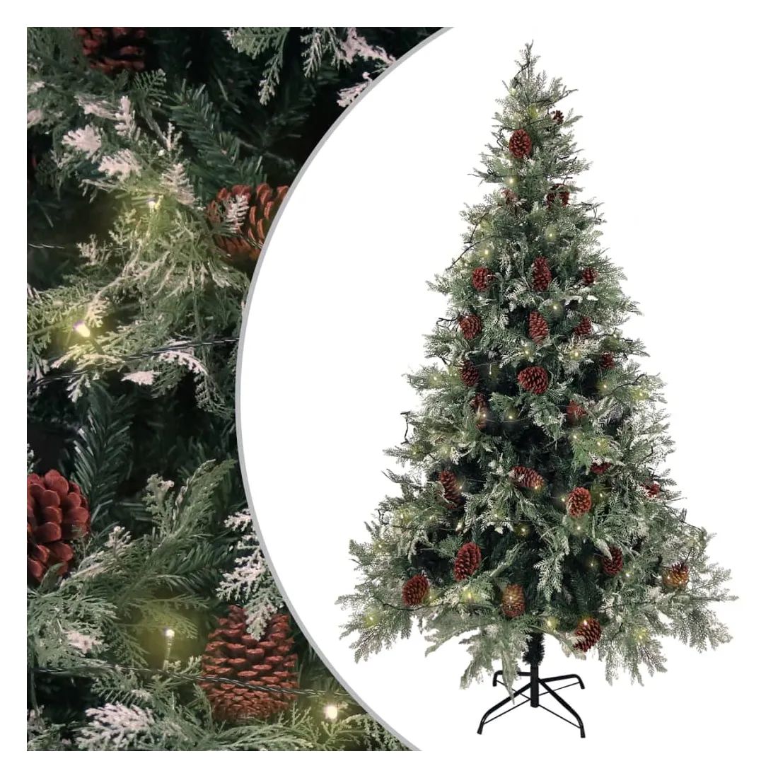 Sapin de Noël pré-éclairé pommes de pin vert blanc 195cm PVC PE
