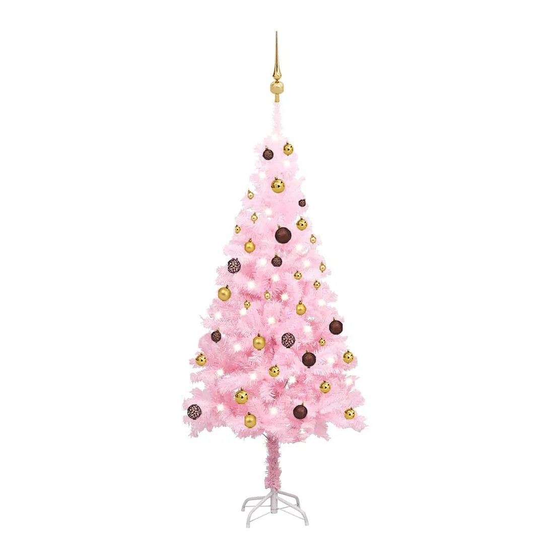 Arbre de Noël artificiel pré-éclairé et boules rose 150 cm PVC