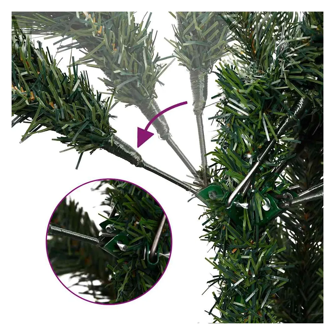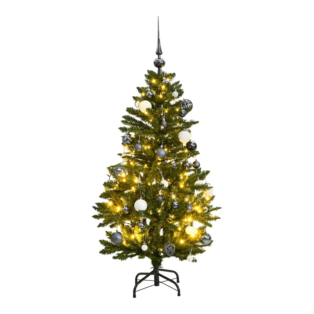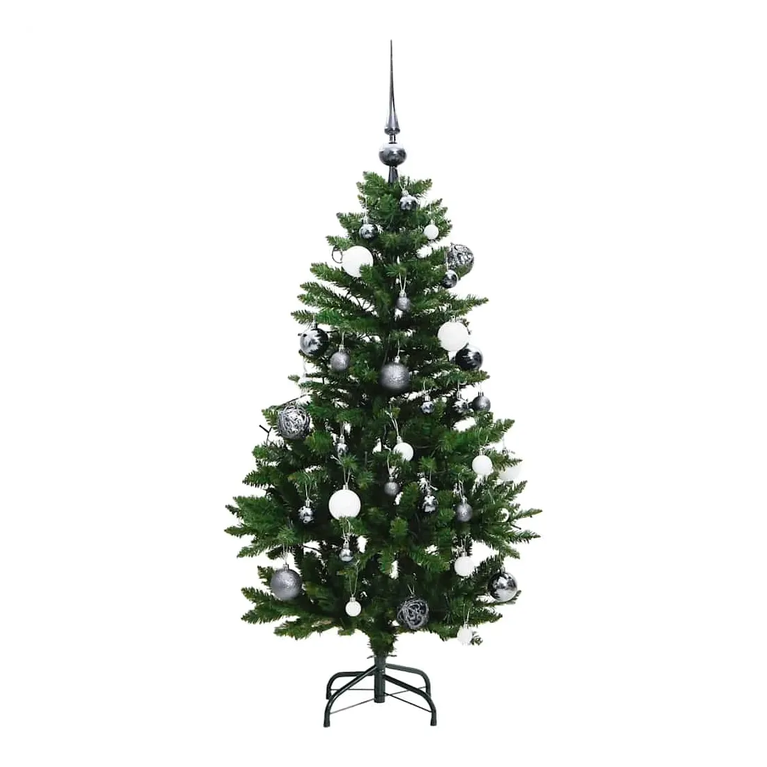 vidaXLLivré avec de belles décorations de vacances, ce sapin de Noël artificiel à charnières avec LED attirera tous les regards dans la soirée et créera l'atmosphère idéale pour ce Noël. Construction à charnières : le sapin de Noël a une construction à charnières, de sorte que les branches se rabattent automatiquement au bon angle. Cela facilitera grandement l'installation de l'arbre dans une forme parfaite et vous fera également gagner du temps.8 modes d'éclairage : la guirlande lumineuse LED a 8 effets d'éclairage différents (combinaison, vague, séquentiel, lueur lente, poursuite/courant d'eau, extinction lente, scintillement/clignotement et continu). Vous pouvez changer de mode d'éclairage en appuyant sur le bouton de l'USB pour créer différentes ambiances de vacances.Belle décoration : ces boules de Noël brillantes sont disponibles en trois tailles différentes, ce qui apporte plus de possibilités pour votre décoration DIY.Support robuste : le support en métal offre à votre arbre de Noël une robustesse et une stabilité optimales.Choix économique : vous pouvez réutiliser l'ornement de vacances chaque année, ce qui constitue une option économique par rapport à l'obtention d'un vrai sapin. Bon à savoir :Nous recommandons de vous réserver 30 à 45 minutes après l'assemblage pour façonner correctement l'arbre en épluchant les branches et en écartant les pointes pour donner aux branches un aspect plus charnu.Ce produit est doté d'un connecteur USB qui nécessite une source d'alimentation certifiée de USB 5V (non incluse).Veuillez vous assurer que la connexion USB est branchée à l'intérieur dans un environnement sec.