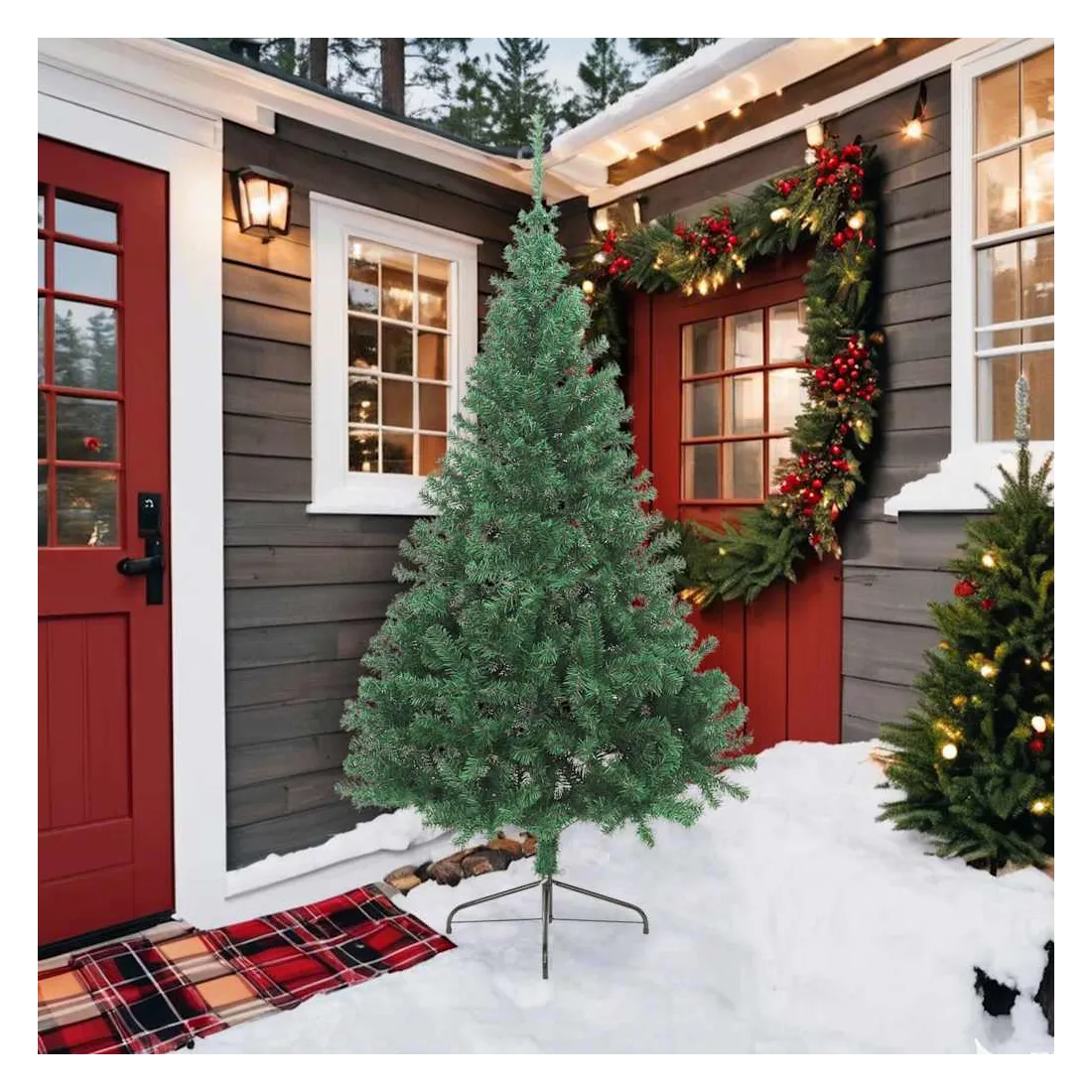 Notre sapin de Noël artificiel moitié forme la pièce maîtresse de vos décorations de Noël, créant une atmosphère de Noël unique ! Ce magnifique sapin de Noël en PVC est très réaliste dans sa forme et son apparence. Les pieds en acier ajoutent à sa stabilité. Notre arbre artificiel peut être placé contre le mur pour économiser plus d'espace. L'arbre de Noël peut également être réutilisé chaque année, ce qui en fait un choix très économique par rapport à un vrai arbre. De plus, il peut être utilisé à l'intérieur ainsi qu'à l'extérieur sous abri.
