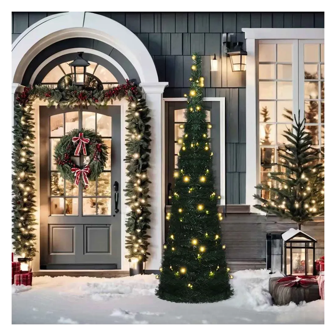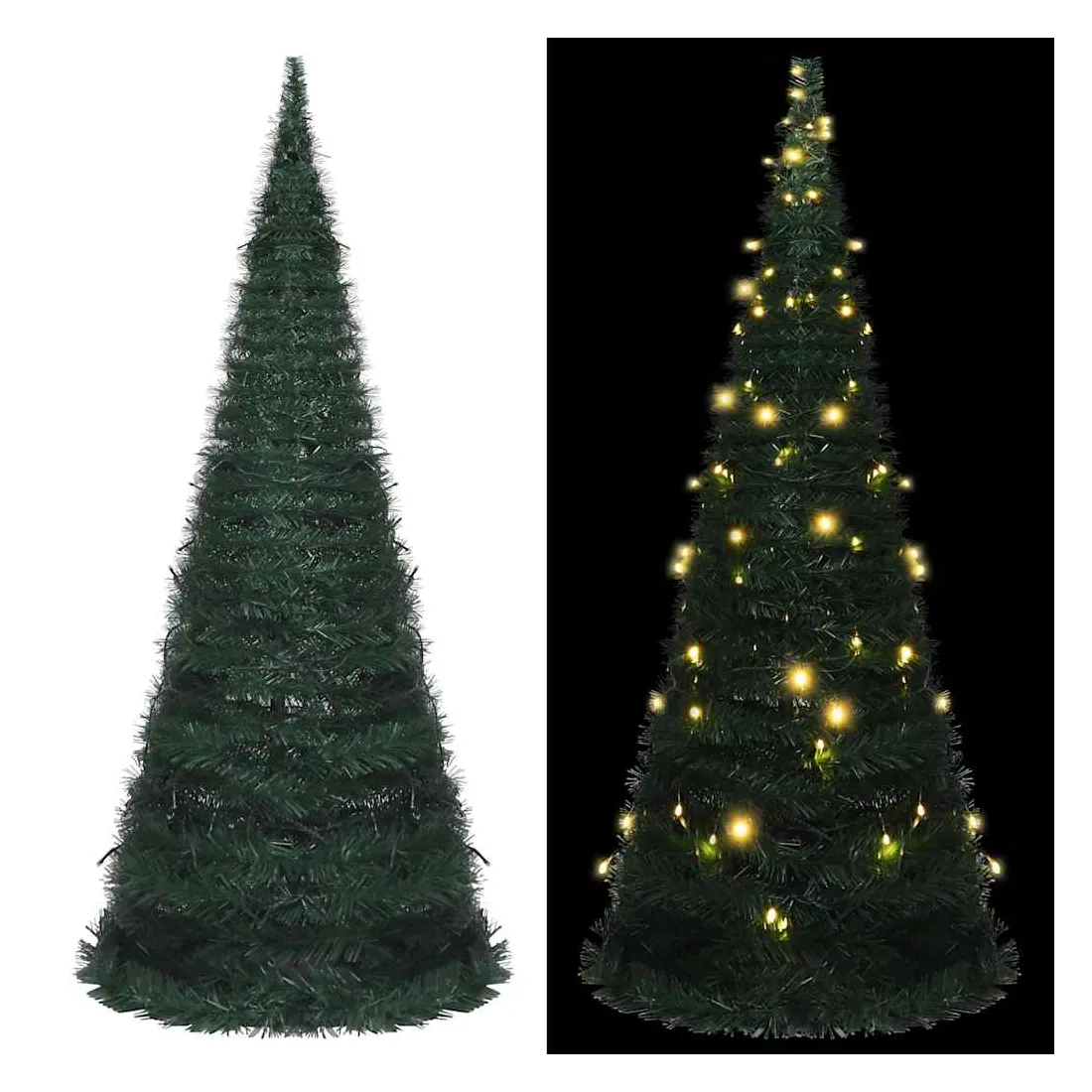 Notre arbre de Noël artificiel à guirlande lumineuse avec 100 LED, crée une atmosphère agréable et unique à l'approche de Noël. Ce joli sapin de Noël, fait de matériau PVC, est léger et peut se réduire en une forme minuscule pour un rangement facile. La décoration de vacances peut être réutilisée chaque année, ce qui en fait un choix très économique par rapport à un vrai arbre. De plus, il peut être utilisé à l'intérieur ainsi qu'à l'extérieur sous abri. Remarque : ce produit est doté d'un connecteur USB, mais la source d'alimentation certifiée de USB 5V n'est pas incluse.
