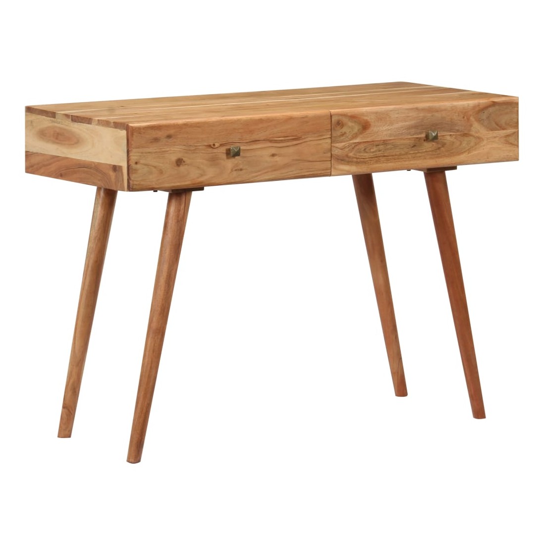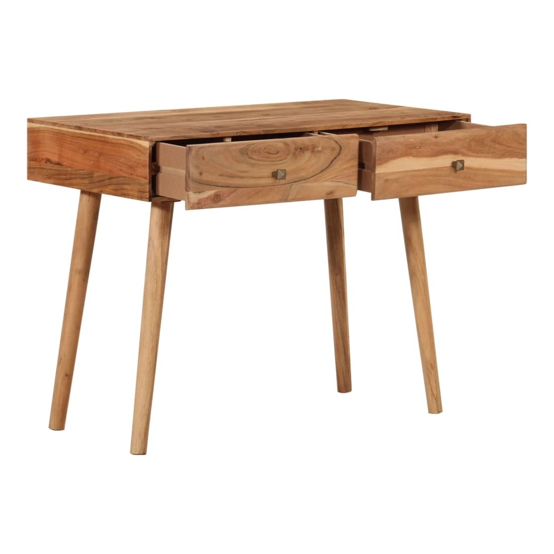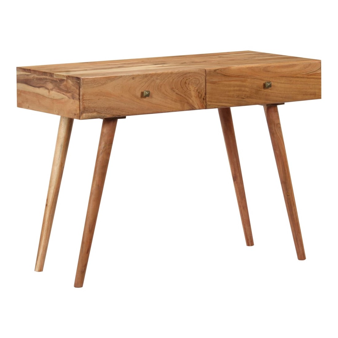 vidaXLCe bureau dégage un charme rustique et constituera le centre d’attraction de votre intérieur. Cette table à écrire est faite de bois d’acacia solide qui a reçu une finition à la couleur de miel pour lui donner un beau look et une couleur chaude. Le savoir-faire et les beaux grains de bois font de chaque meuble un objet unique et légèrement différent l'un de l'autre. Ce bureau d'étude dispose de 2 tiroirs, offrant un espace pour garder vos bloc-notes, livres et divers articles bien rangés. En outre, cette table d'ordinateur pourrait également servir de table console, de table d'entrée ou de table d'appoint. Remarque importante : les grains varient d'une pièce à l'autre, rendant chaque pièce unique ; la livraison est aléatoire.