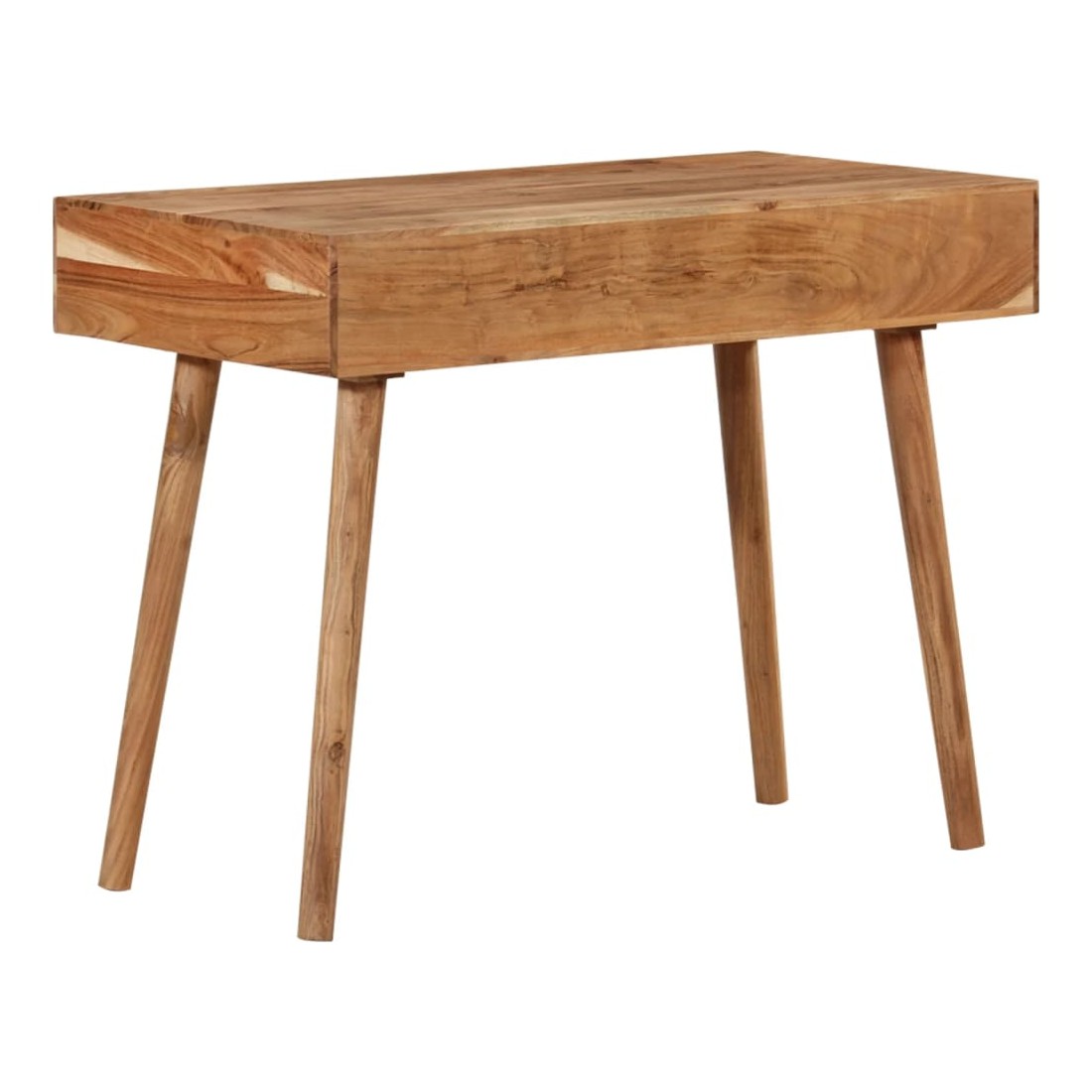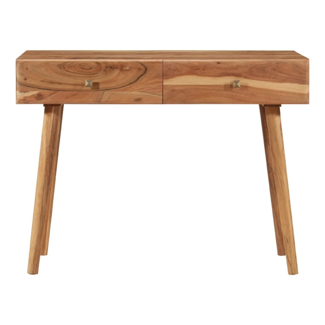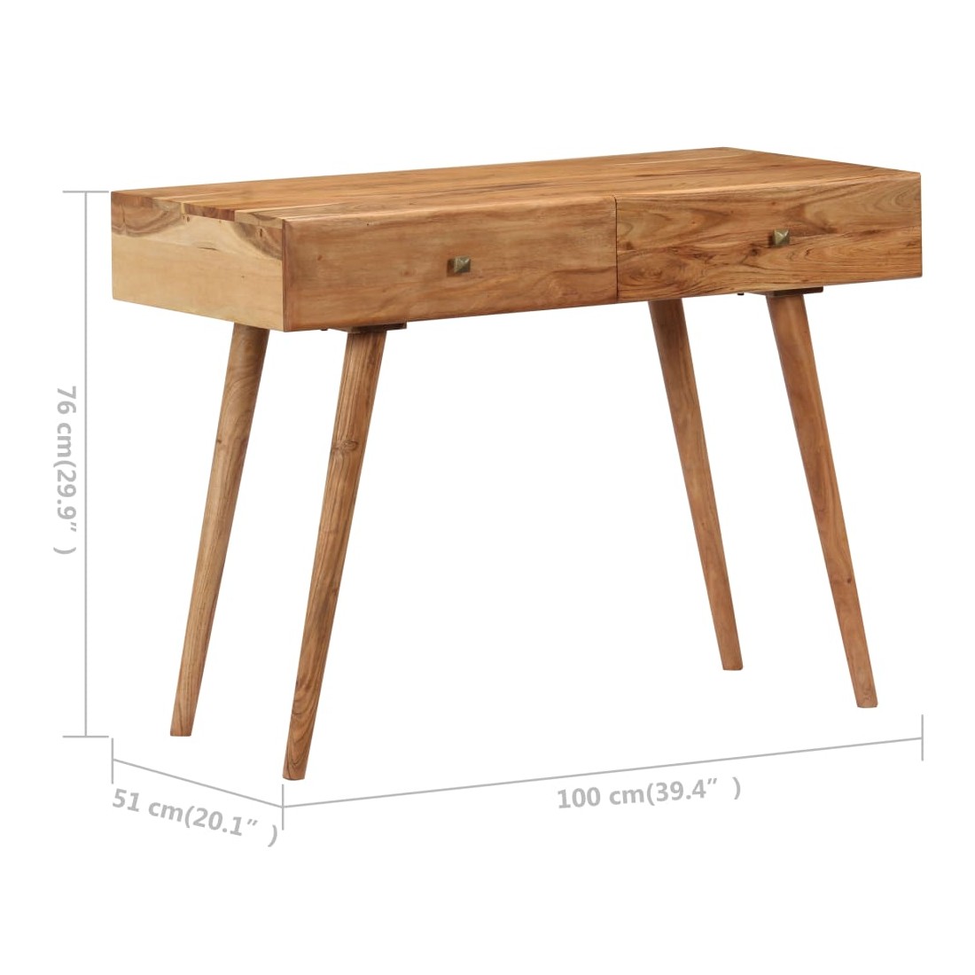 vidaXLCe bureau dégage un charme rustique et constituera le centre d’attraction de votre intérieur. Cette table à écrire est faite de bois d’acacia solide qui a reçu une finition à la couleur de miel pour lui donner un beau look et une couleur chaude. Le savoir-faire et les beaux grains de bois font de chaque meuble un objet unique et légèrement différent l'un de l'autre. Ce bureau d'étude dispose de 2 tiroirs, offrant un espace pour garder vos bloc-notes, livres et divers articles bien rangés. En outre, cette table d'ordinateur pourrait également servir de table console, de table d'entrée ou de table d'appoint. Remarque importante : les grains varient d'une pièce à l'autre, rendant chaque pièce unique ; la livraison est aléatoire.