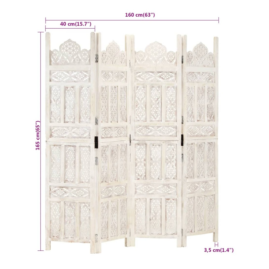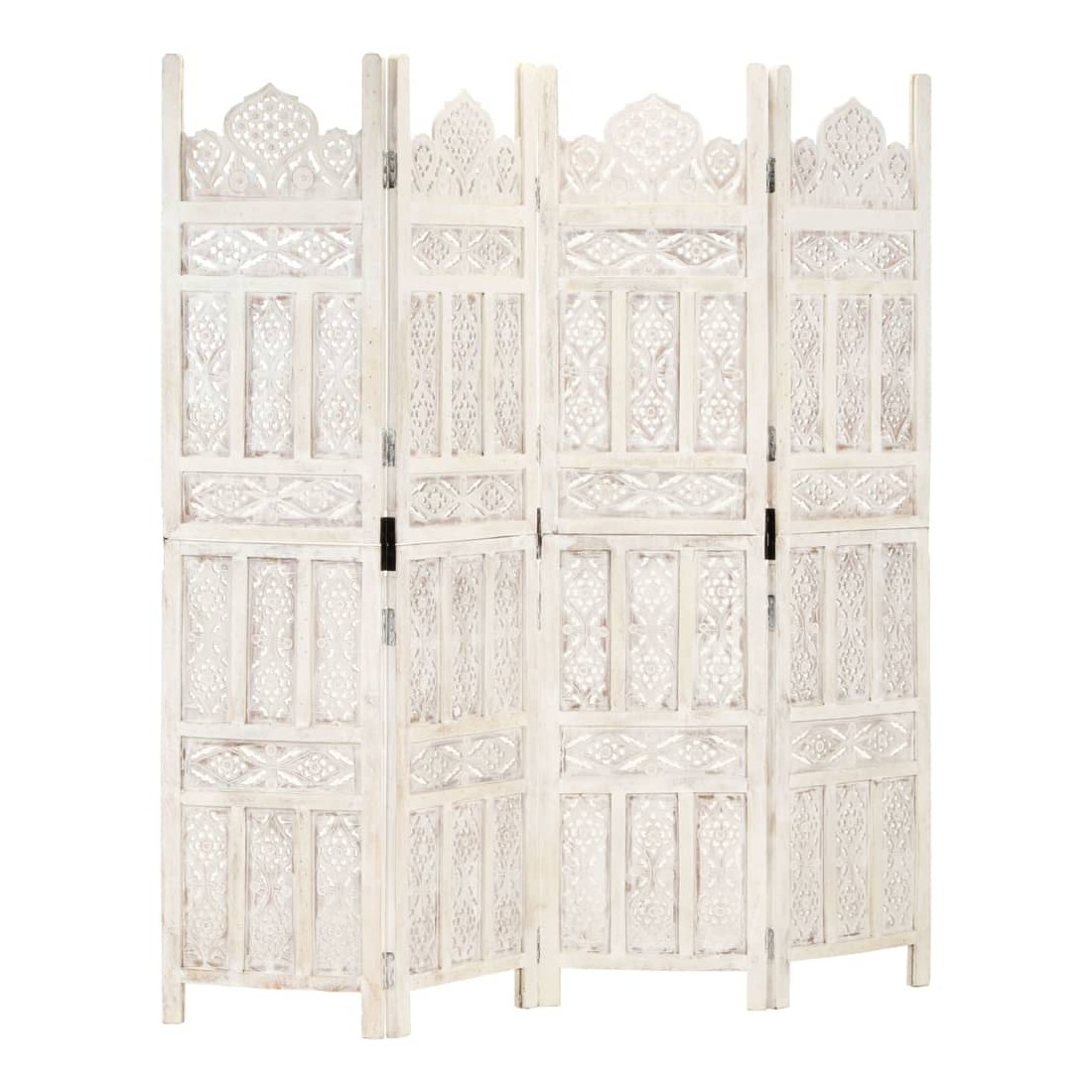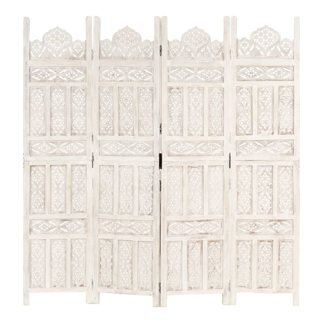 Cloison de séparation 4 panneaux Blanc 160x165 cm Bois manguier