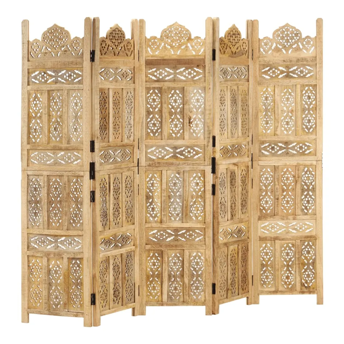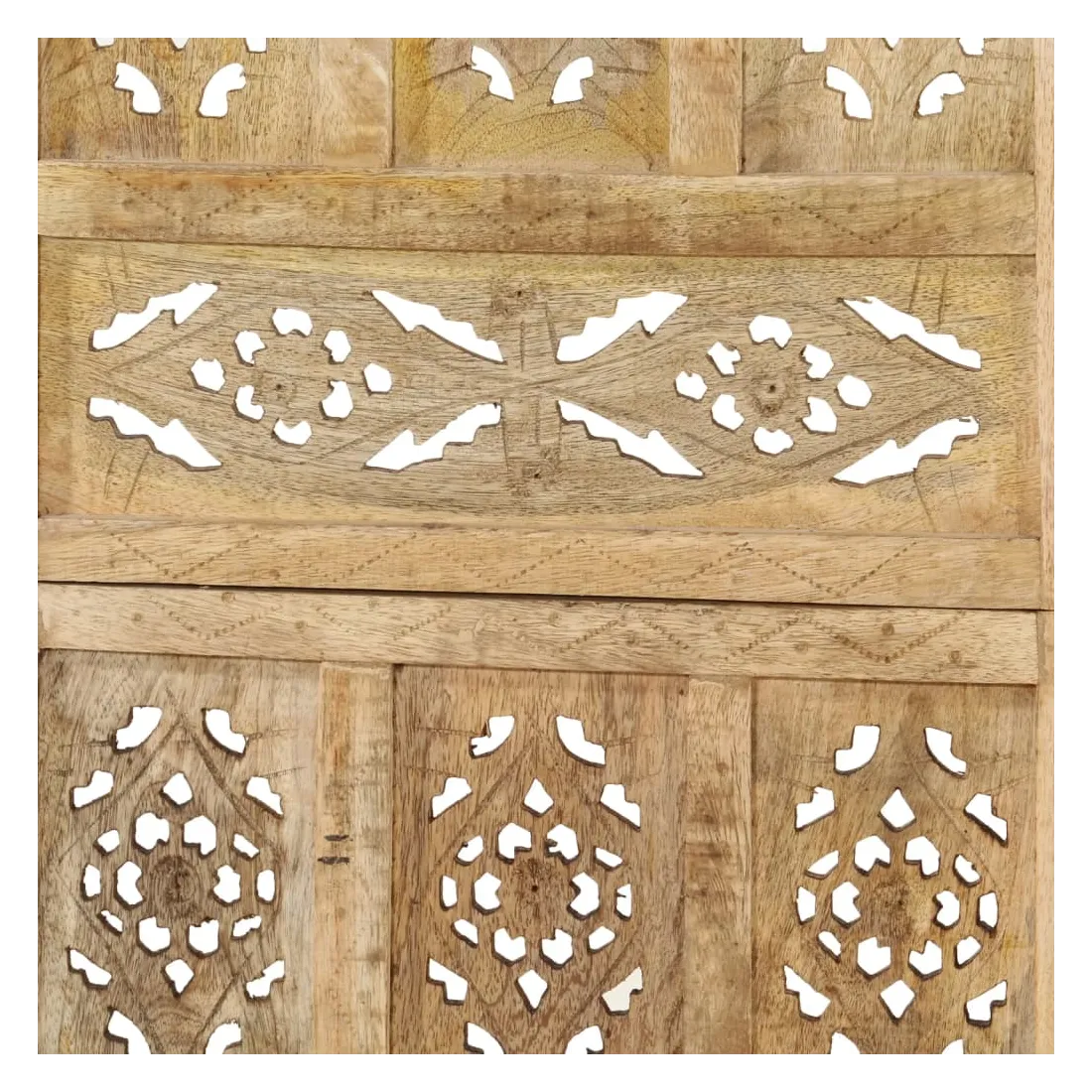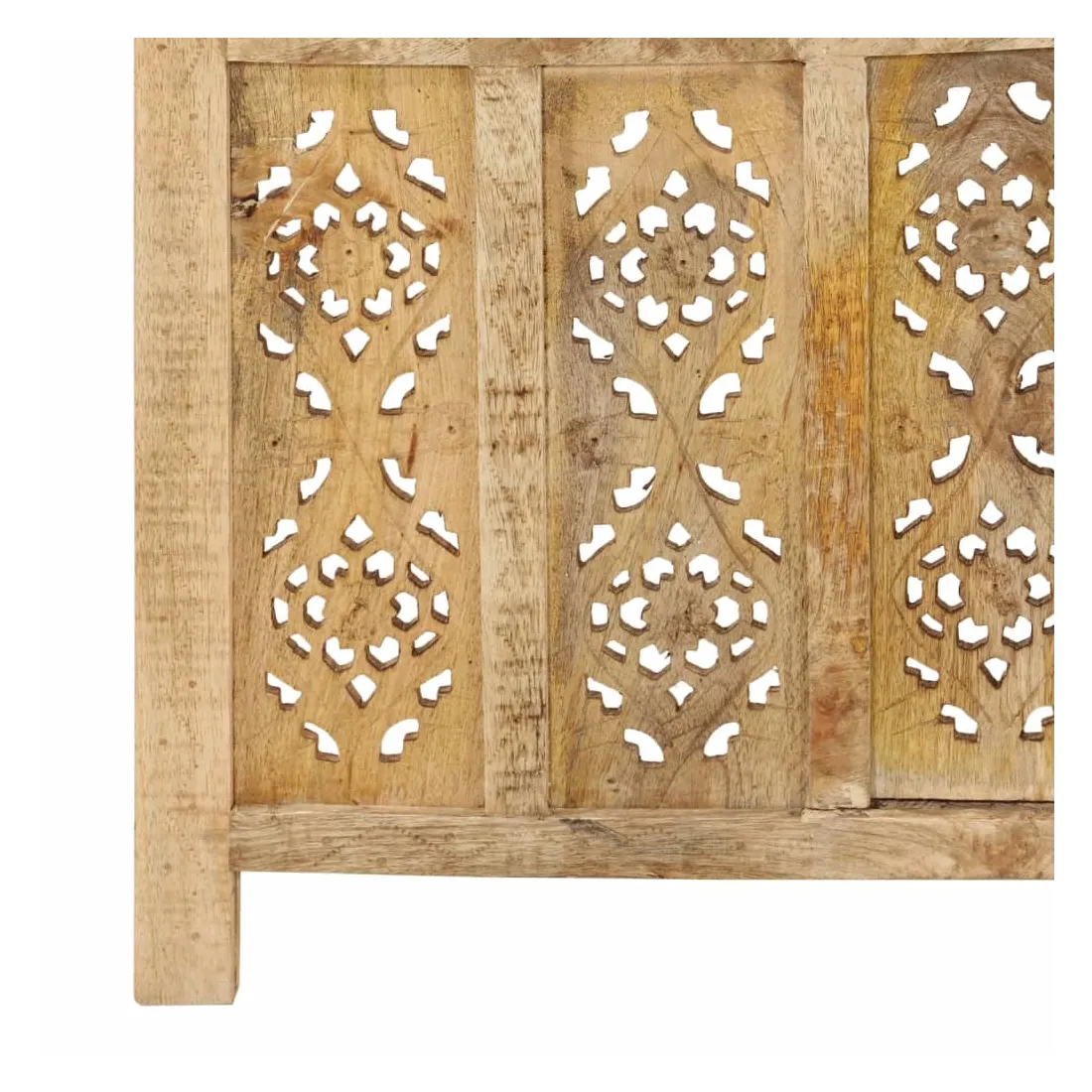 Ajoutez une touche de charme classique à votre intérieur avec notre élégante cloison de séparation sculptée à la main ! Elle est parfaite à placer dans la chambre à coucher pour créer un dressing privé et séparé ou une section d'une partie d'une pièce. De plus, la cloison de séparation présente une construction en bois de manguier massif et est sculptée à la main avec de beaux motifs, ce qui augmente la beauté classique de l'écran d'intimité. Elle peut également être facilement pliée pour économiser de l'espace lorsqu'elle n'est pas utilisée. Le paravent est facile à assembler. Remarque : parce que le produit est fait à la main, de petites différences dans le motif et la couleur peuvent exister.