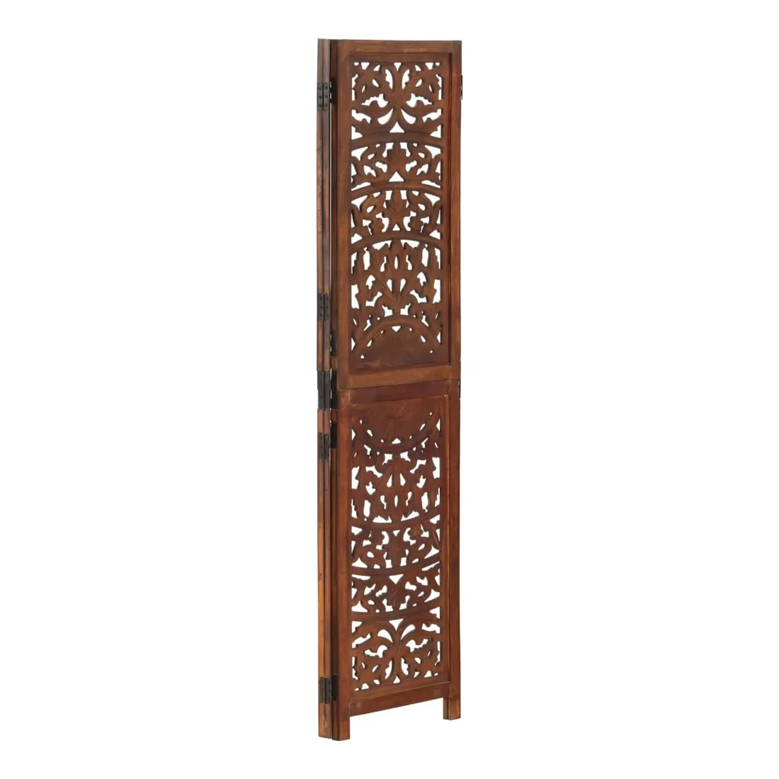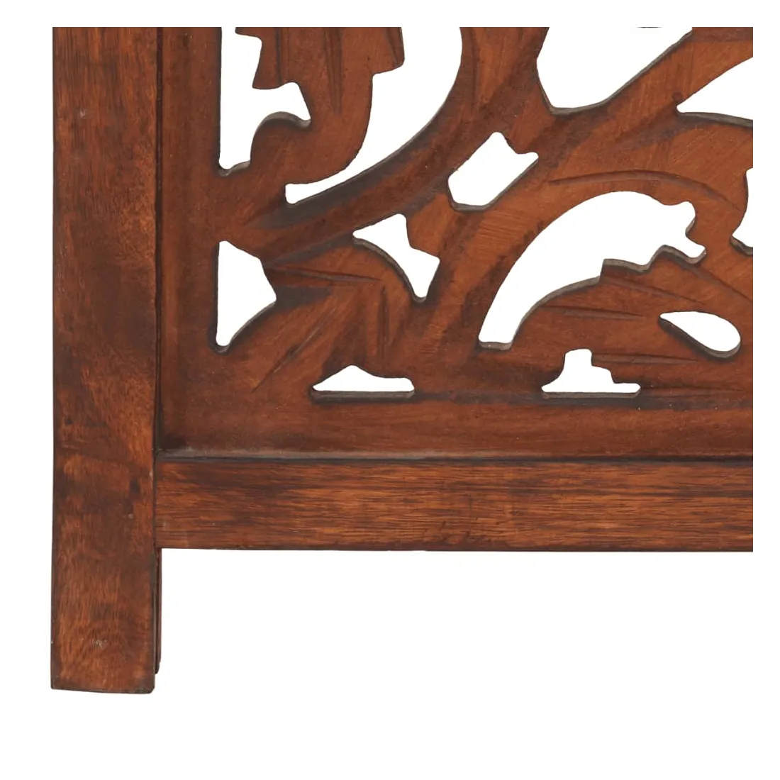 Ajoutez une touche élegante à votre intérieur avec notre magnifique cloison de séparation sculptée à la main ! Elle est parfaite à placer dans la chambre à coucher pour créer un dressing privé et séparé ou une section d'une partie d'une pièce. De plus, la cloison de séparation présente une construction en bois de manguier massif et est sculptée à la main avec de beaux motifs, ce qui augmente le charme moderne de l'écran d'intimité. Elle peut également être facilement pliée pour économiser de l'espace lorsqu'elle n'est pas utilisée. Le paravent est facile à assembler. Remarque : parce que le produit est fait à la main, de petites différences dans le motif et la couleur peuvent exister.
