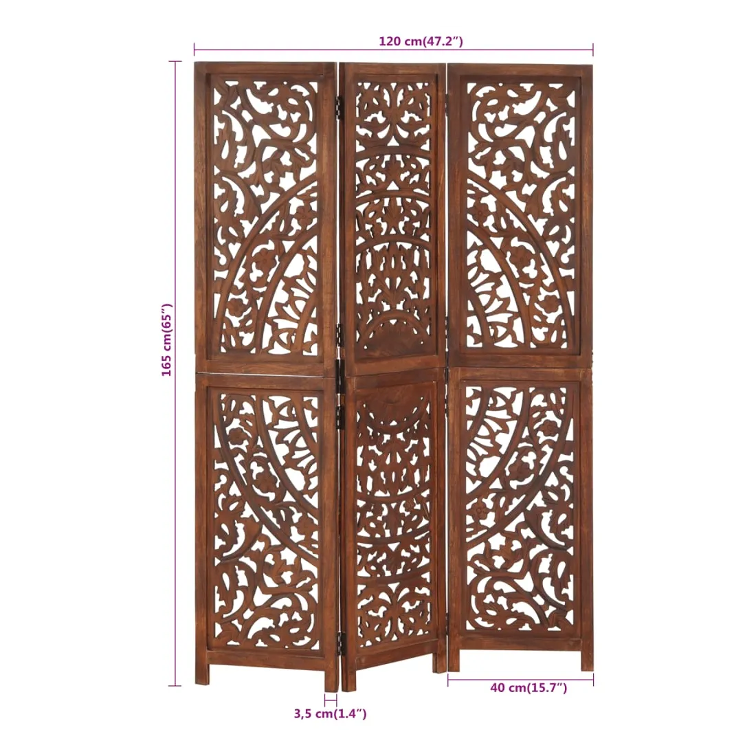 Cloison de séparation 3 panneaux Marron 120x165cm Bois manguier