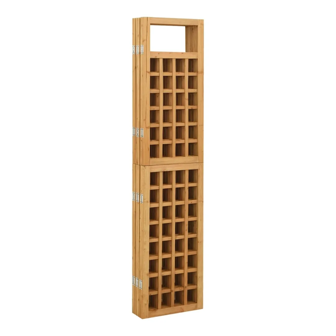 Cette cloison de séparation de pièce/patio, qui peut également être utilisée comme treillis, fonctionne comme un support parfait pour les plantes et leur offre suffisamment d'espace pour étendre les branches. Le treillis est fabriqué en bois de sapin massif, ce qui le rend durable et adapté à un usage intérieur. Ce treillis en bois offre un support suffisant pour les rosiers ou autres plantes grimpantes. Il peut également être utilisé comme cloison de séparation de pièce et crée un sentiment d'intimité et de confort. De plus, ce paravent en bois peut être replié pour gagner de la place lorsqu'il n'est pas utilisé. Veuillez noter que le bois est un produit naturel et peut présenter des imperfections.